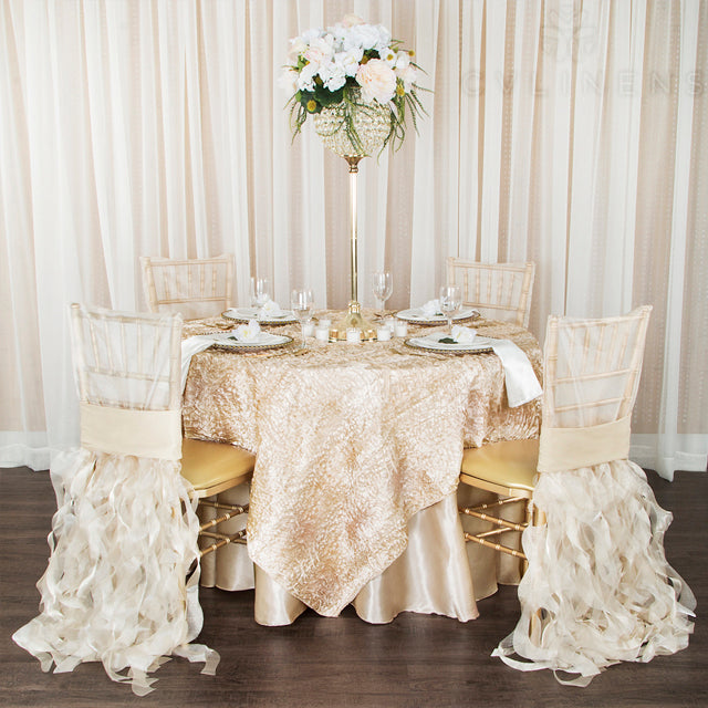 For formal events, like anniversaries, you can opt for a luxurious aesthetic. Pairing champagne tablecloth with gold accent pieces is an excellent way to achieve this look.