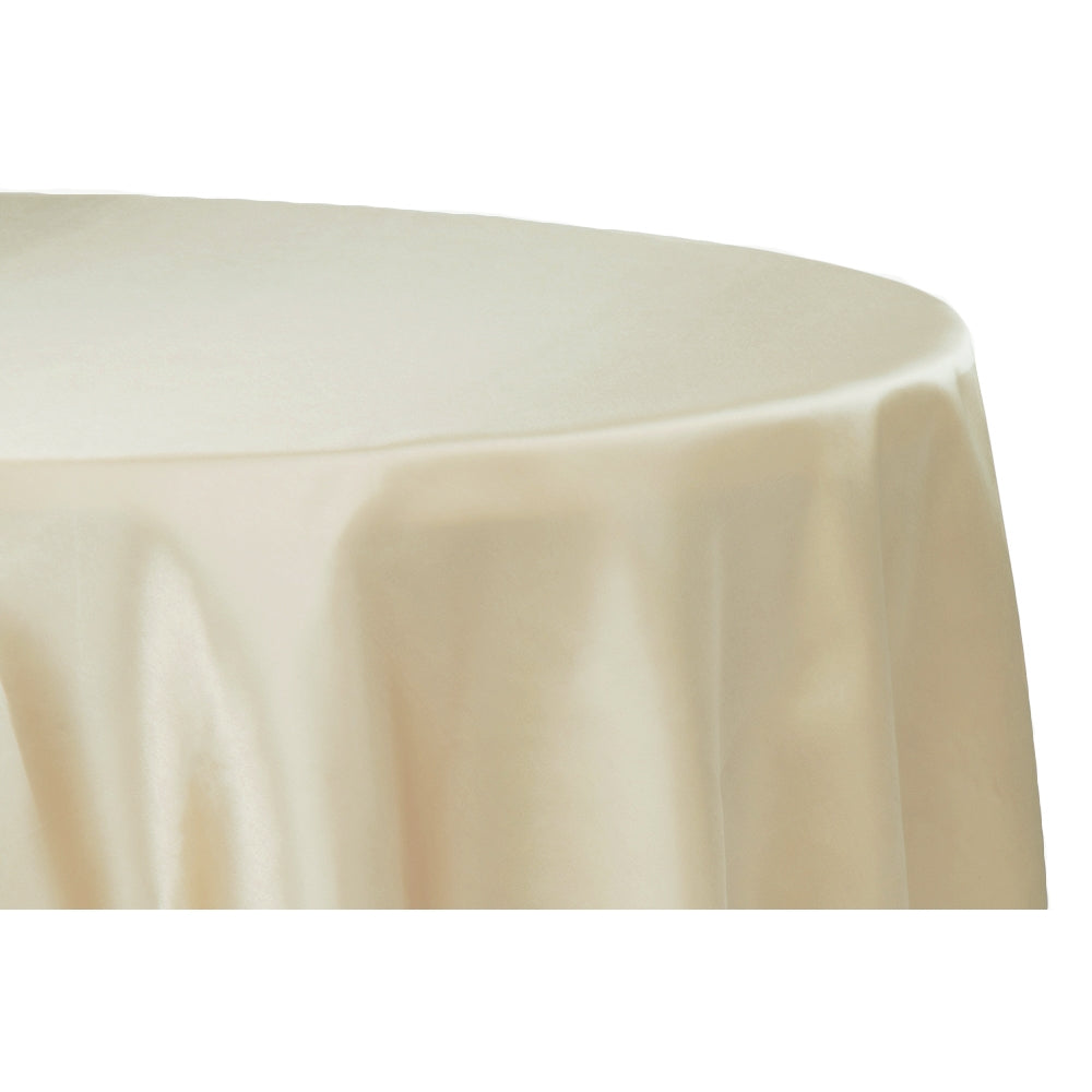 We craft our 108-inch round satin tablecloth from 100% polyester, spinning it to look and feel like satin. Made of high-quality fabrics, this tablecloth is seamless with a surged finished edge for a polished feel. The champagne hue adds elegance to any space.
