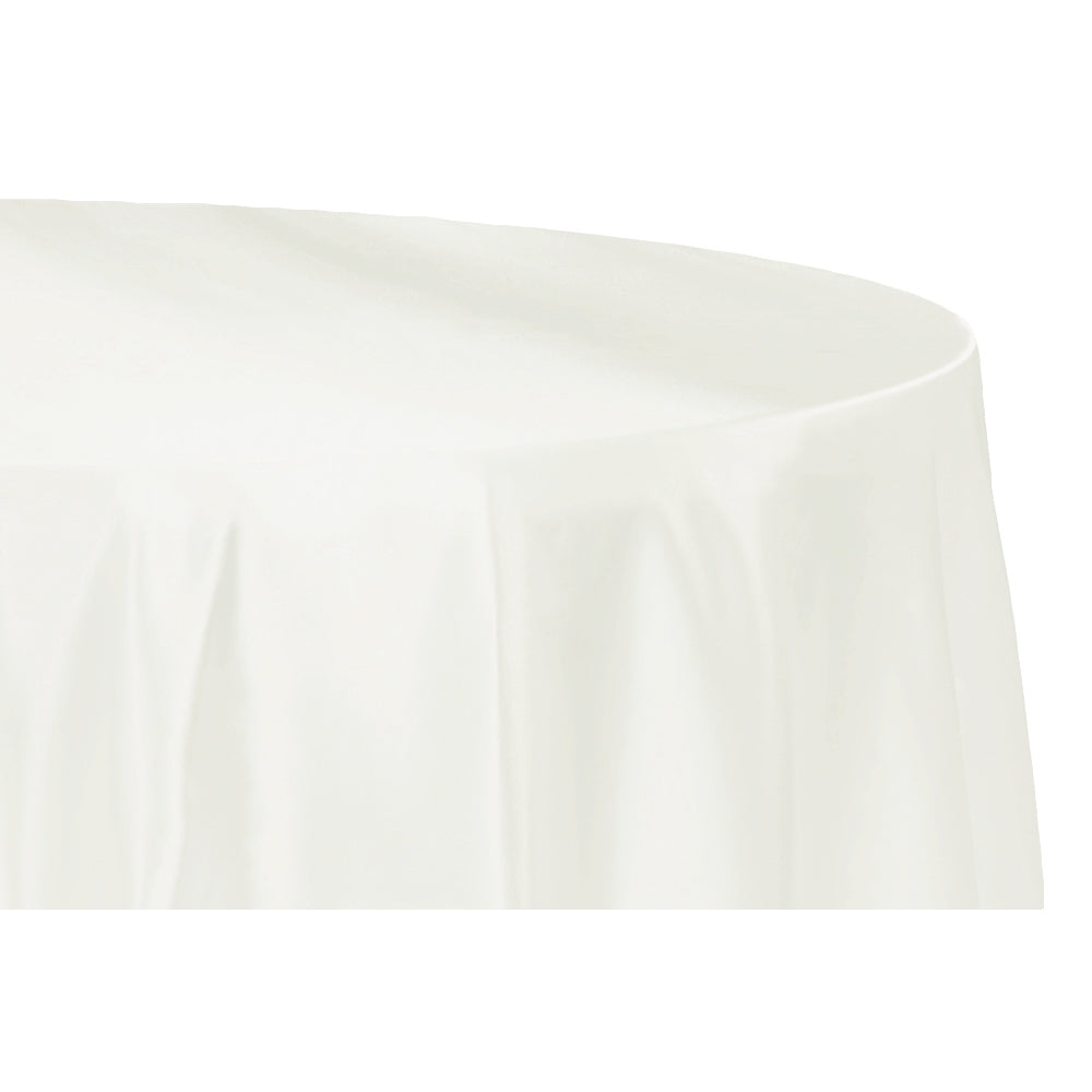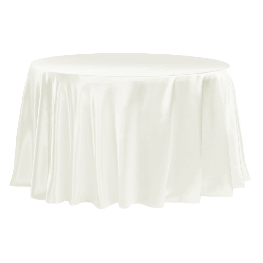 We craft our 108-inch round satin tablecloth from 100% polyester, spinning it to look and feel like satin. Made of high-quality fabrics, this tablecloth is seamless with a surged finished edge for a polished feel. The ivory hue adds elegance to any space.