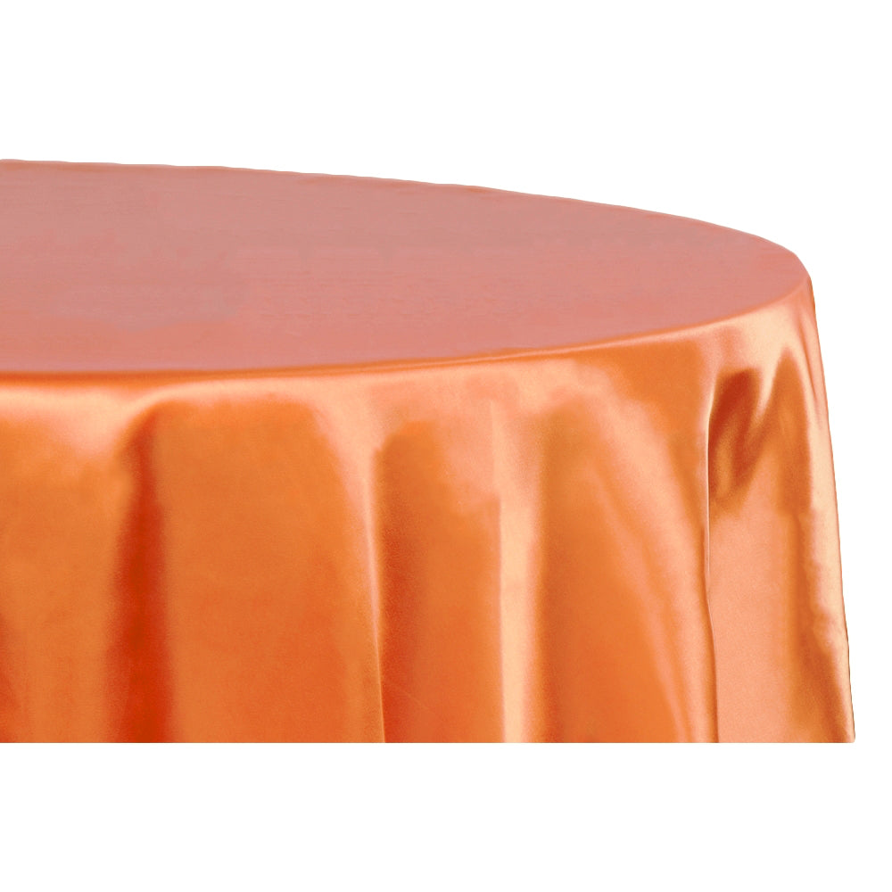 Create a stunning atmosphere for your special day with a Satin 120” Round Tablecloth in Burnt Orange. Style your event with this versatile hue, renowned for introducing a vibrant ambiance to event spaces.