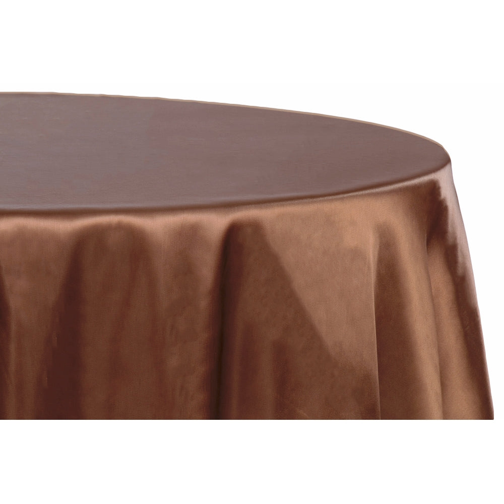 Create a stunning atmosphere for your special day with a Satin 120” Round Tablecloth in Chocolate Brown. Style your event with this versatile hue, renowned for introducing a vibrant ambiance to event spaces.
