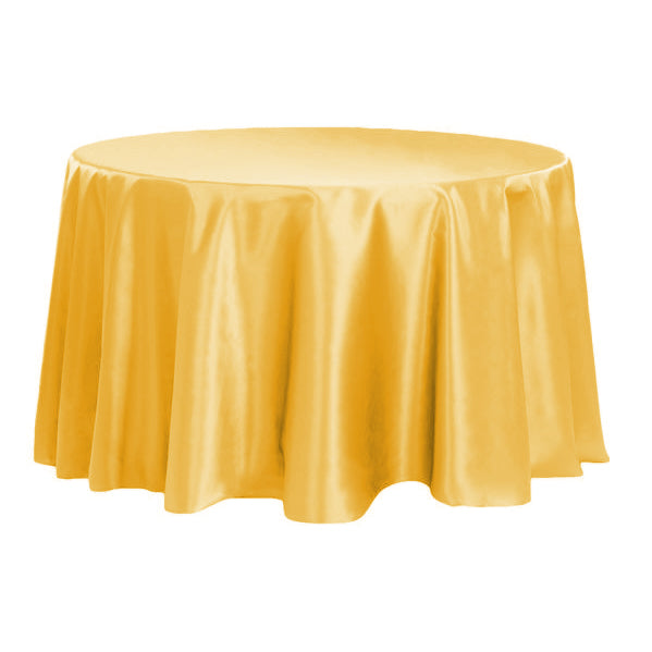 Complete the look of your special day with our Satin Tablecloths! Our Satin Tablecloths are the epitome of class and elegance for any sophisticated event. Satin has a gorgeous sheen surface that beautifully reflects light to show off the unique folds and draping, creating a truly unique romantic atmosphere. Best of all, satin is a versatile fabric that can be paired with any other solid or textured fabric and still maintain a cohesive look at your wedding or event!