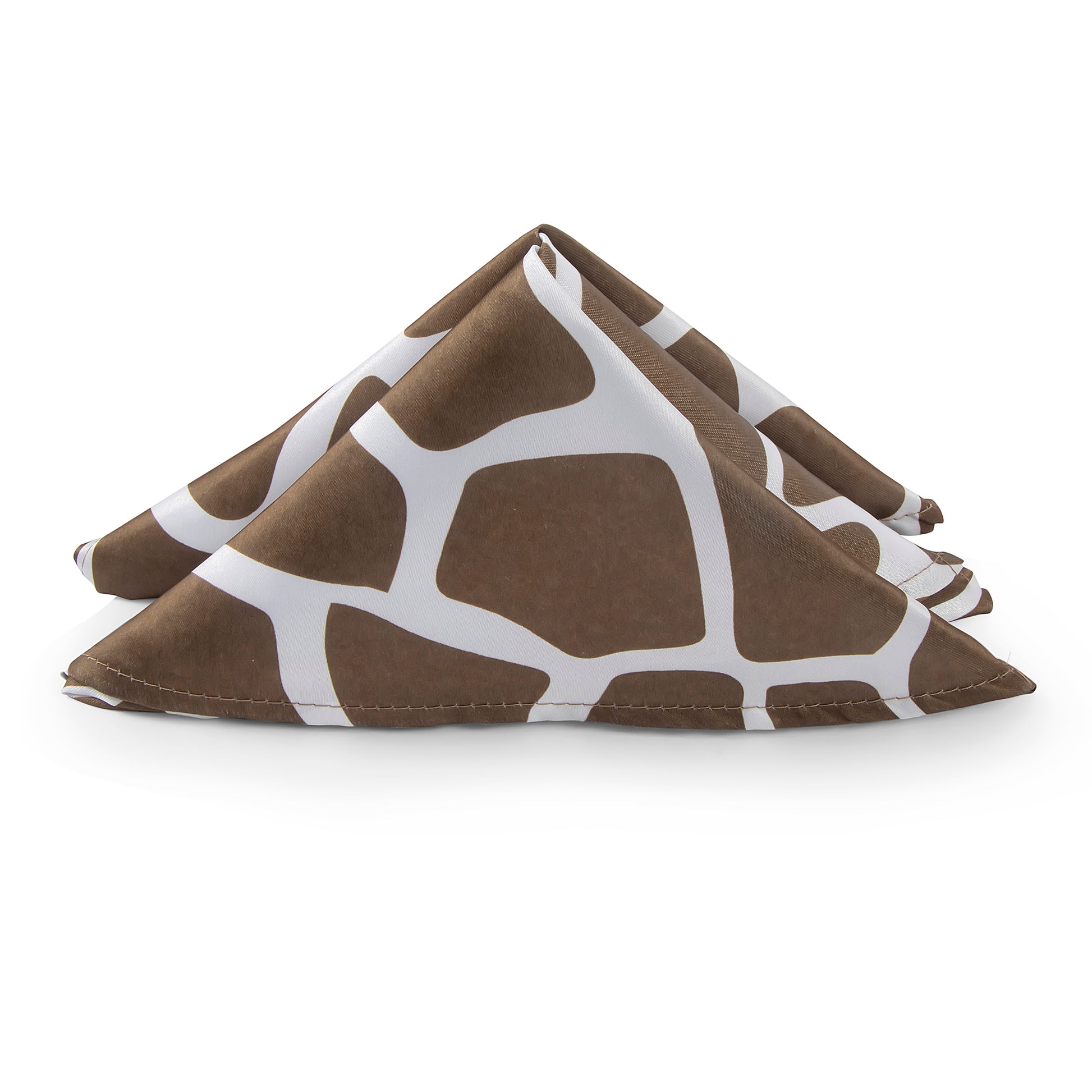 Complete the look of your special day with our Safari theme Giraffe Satin Napkins! Add a touch of color to your wedding, birthday celebration, or any other special event with the sheen of satin. Each napkin is a 20"x20" square of luxurious satin with a hemmed edge. Best of all, satin is a versatile fabric that can be paired with any other solid or textured fabric and still maintained a cohesive look at your wedding or event. Let our classic Satin napkin be the finishing touch to your Special Event decor!