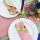 For a uniform and cohesive look, pair satin napkins with satin tablecloths. Going with satin provides a luxurious feel to your event. Add chair sashes for a perfect finishing touch. You can also opt for white tablecloths and pair them with gold accents for an understated yet striking look.