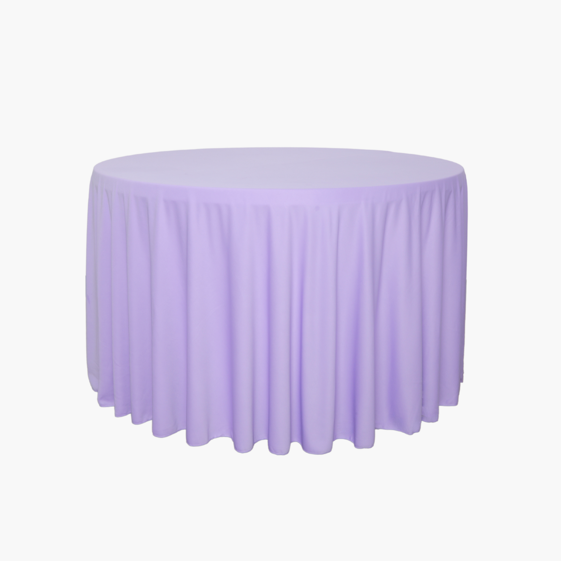 Decorate your event with the delicate charm of our Lavender Scuba 120" Round Tablecloth. This soft and soothing shade brings a sense of serenity and elegance to any occasion. From dreamy outdoor weddings to serene indoor gatherings, these tablecloths infuse a touch of lavender loveliness into your celebration.