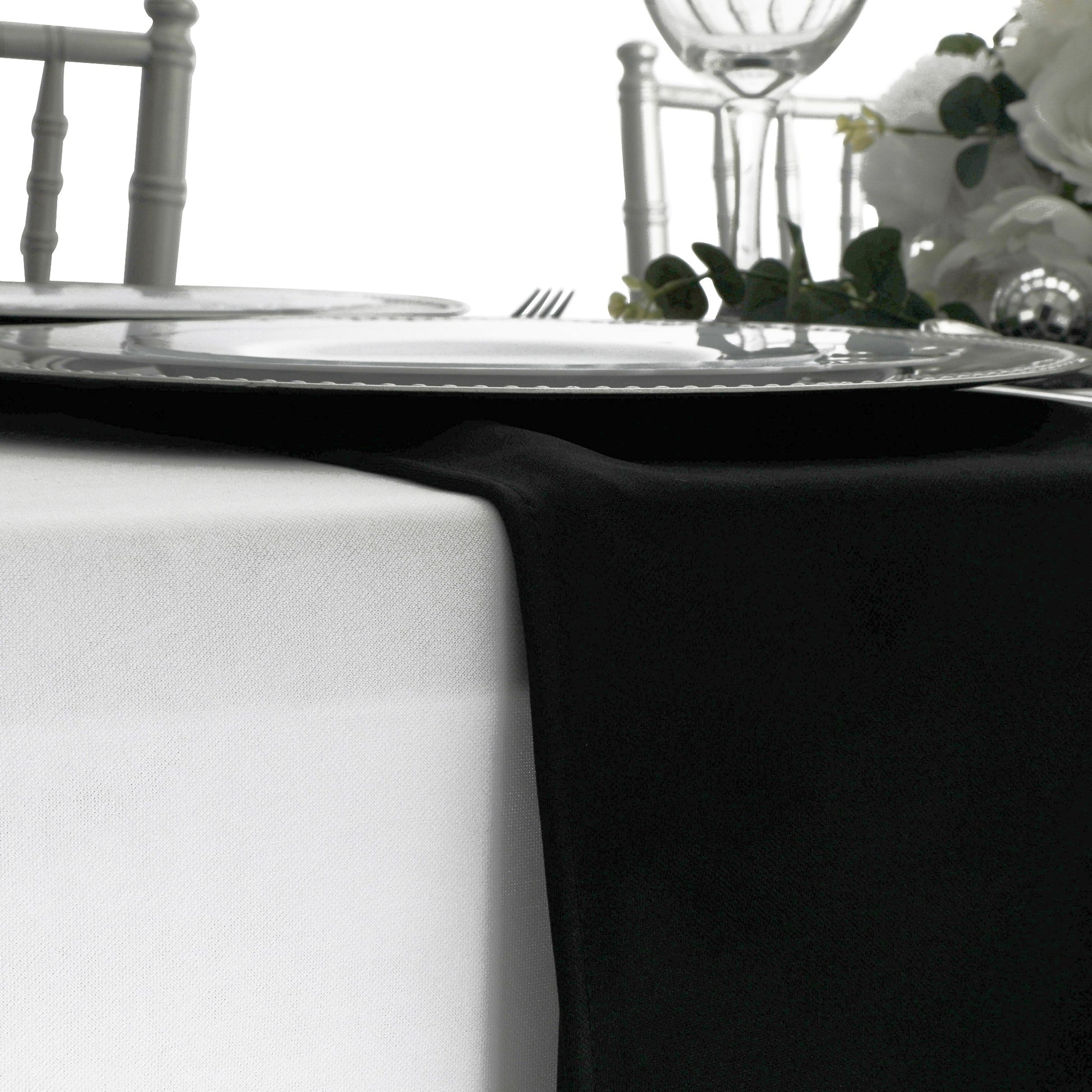 Pair our black event linens for sale with white polyester tablecloths in bulk and silver or gold accents for a classic and timeless look. You can also try different napkin folding techniques to add sophistication and set the table for a formal and refined atmosphere.