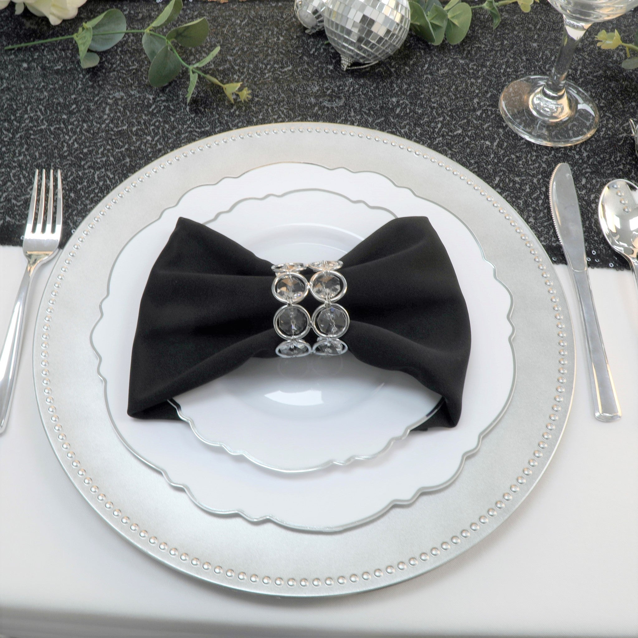You can even match these black napkins with our line of chiavari chair covers and beautiful napkin rings for weddings and events for a complete tablescape decor.