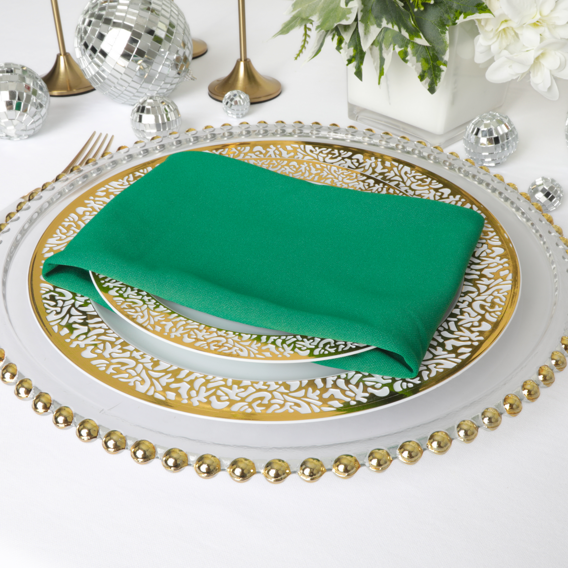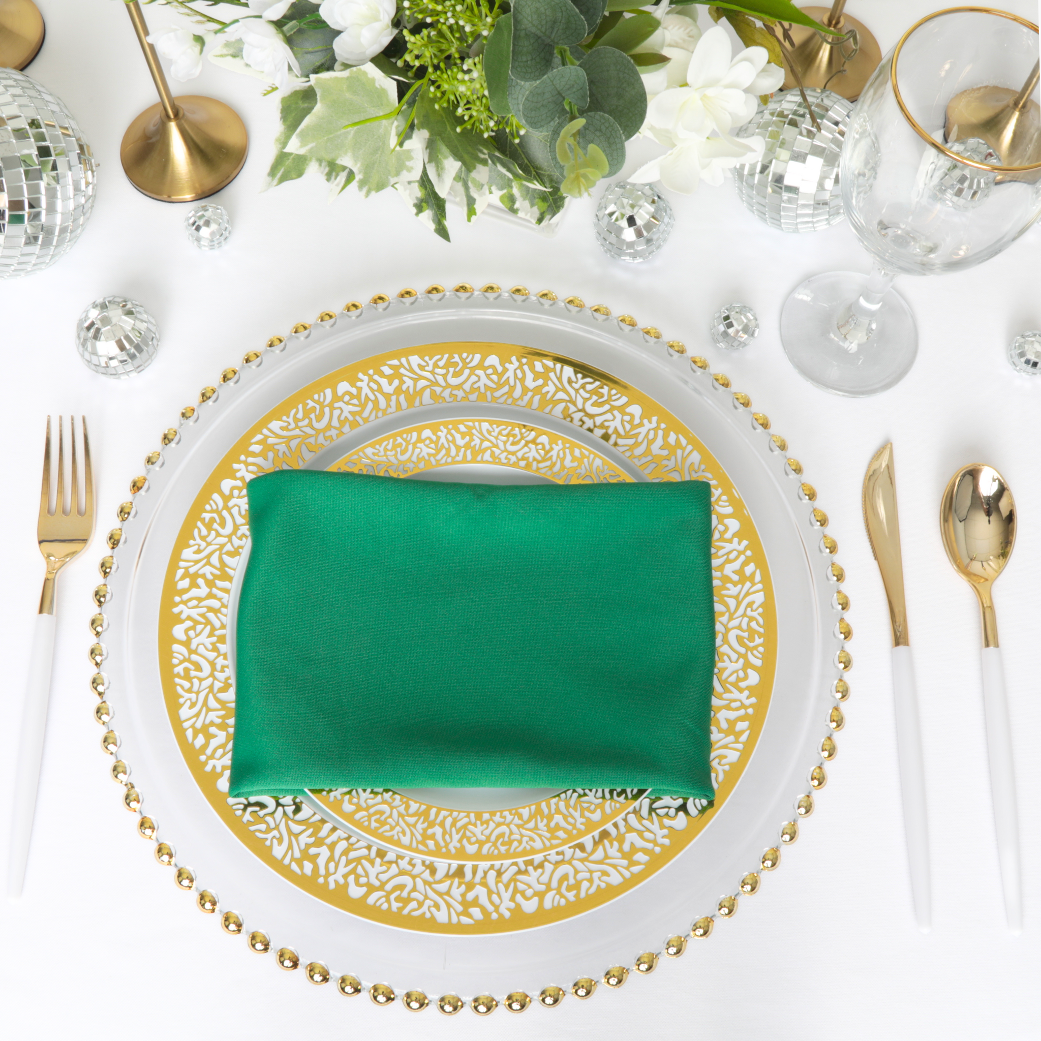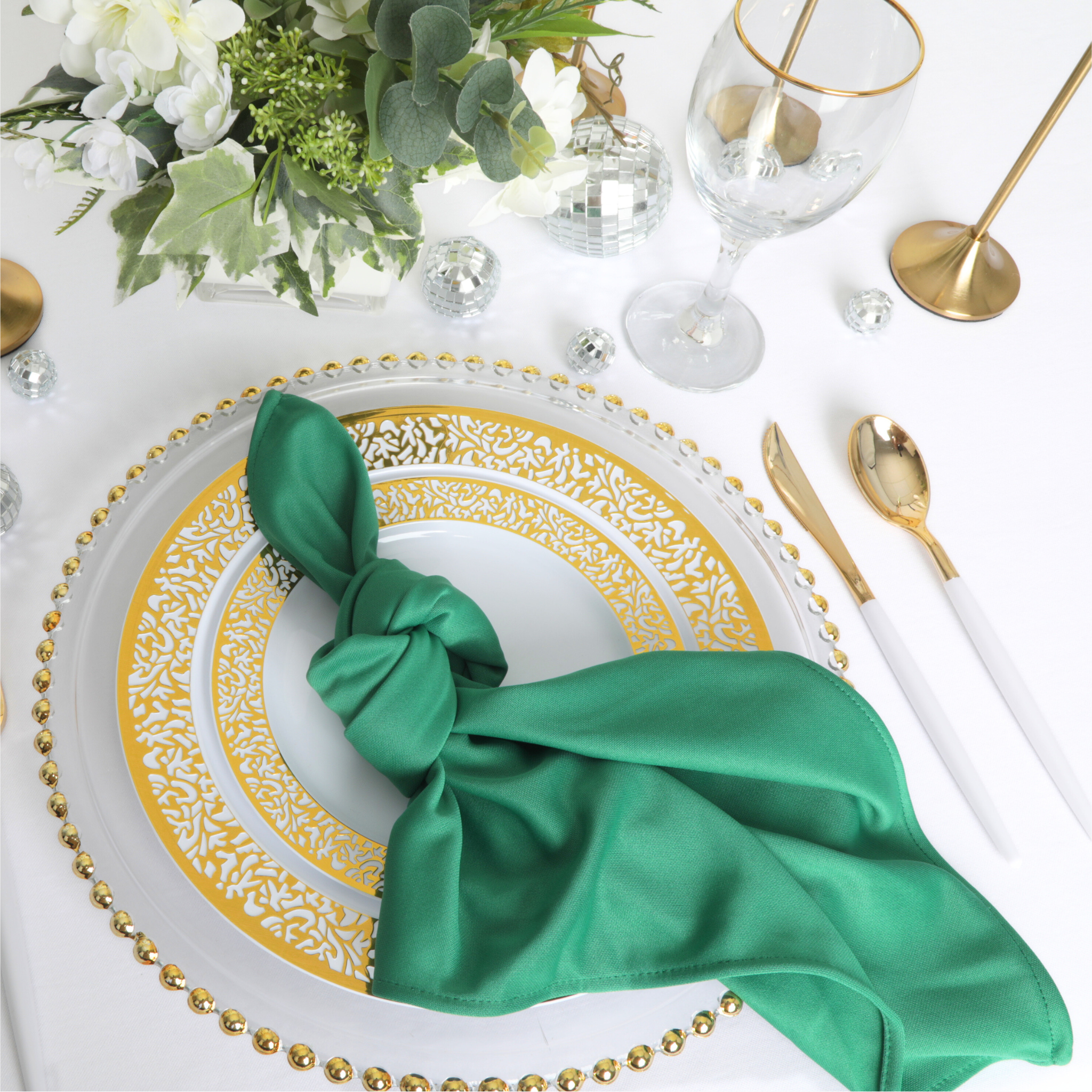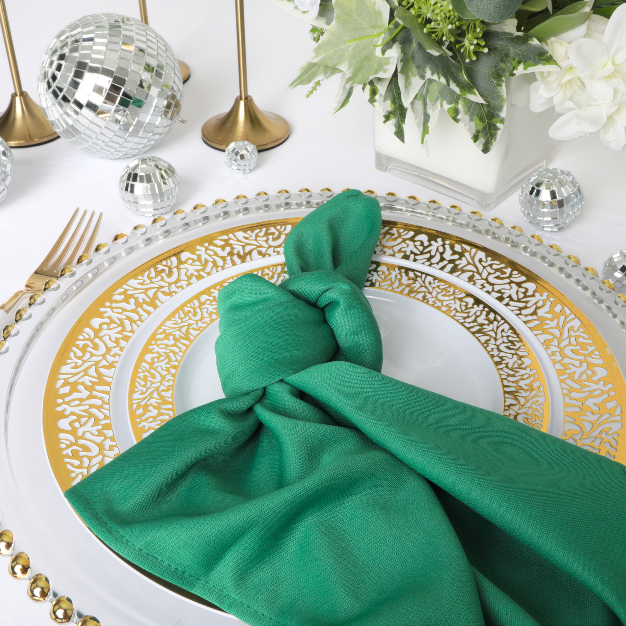 You can even match these emerald green napkins with our line of chiavari chair covers and beautiful napkin rings for weddings and events for a complete tablescape decor.