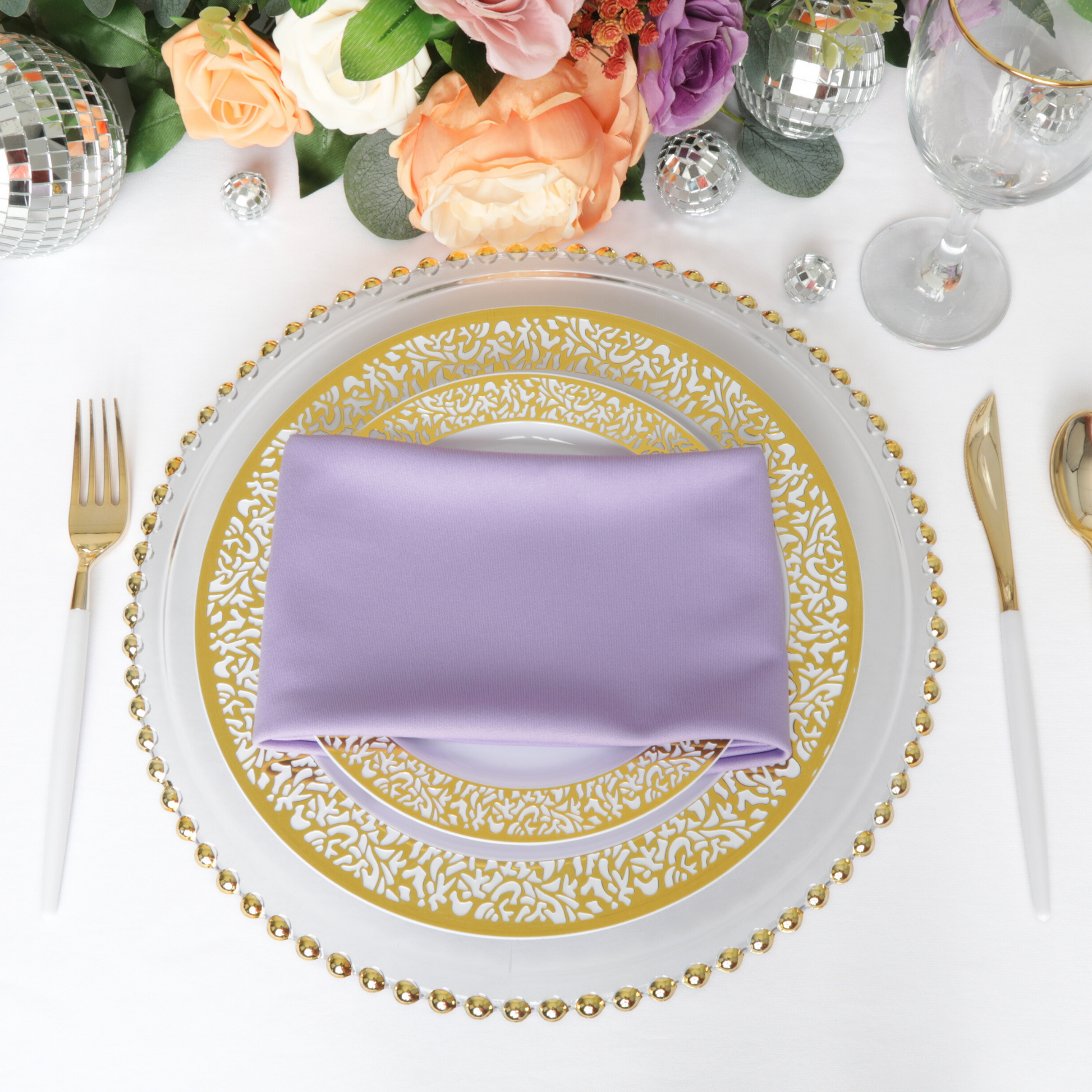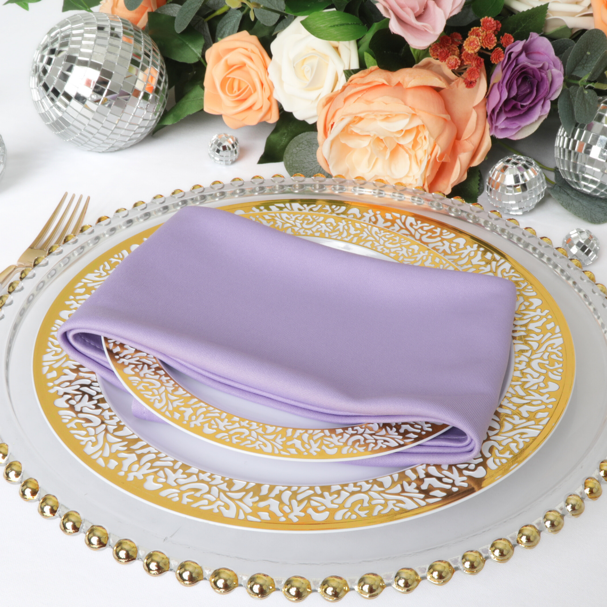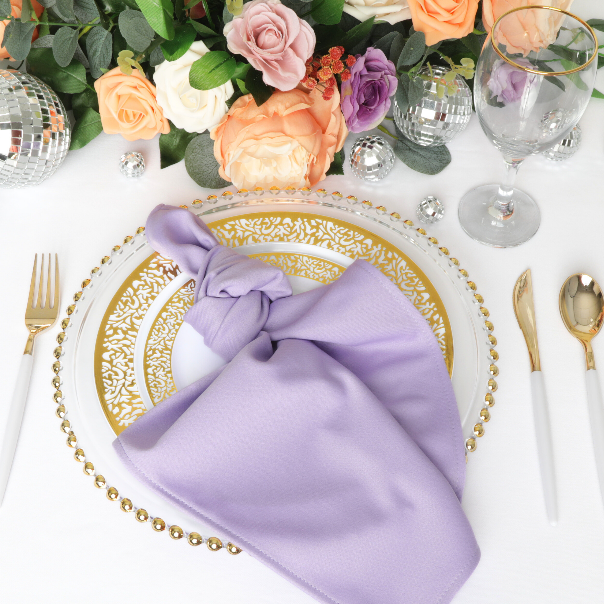 You can even match these Lavender napkins with our line of chiavari chair covers and beautiful napkin rings for weddings and events for a complete tablescape decor.