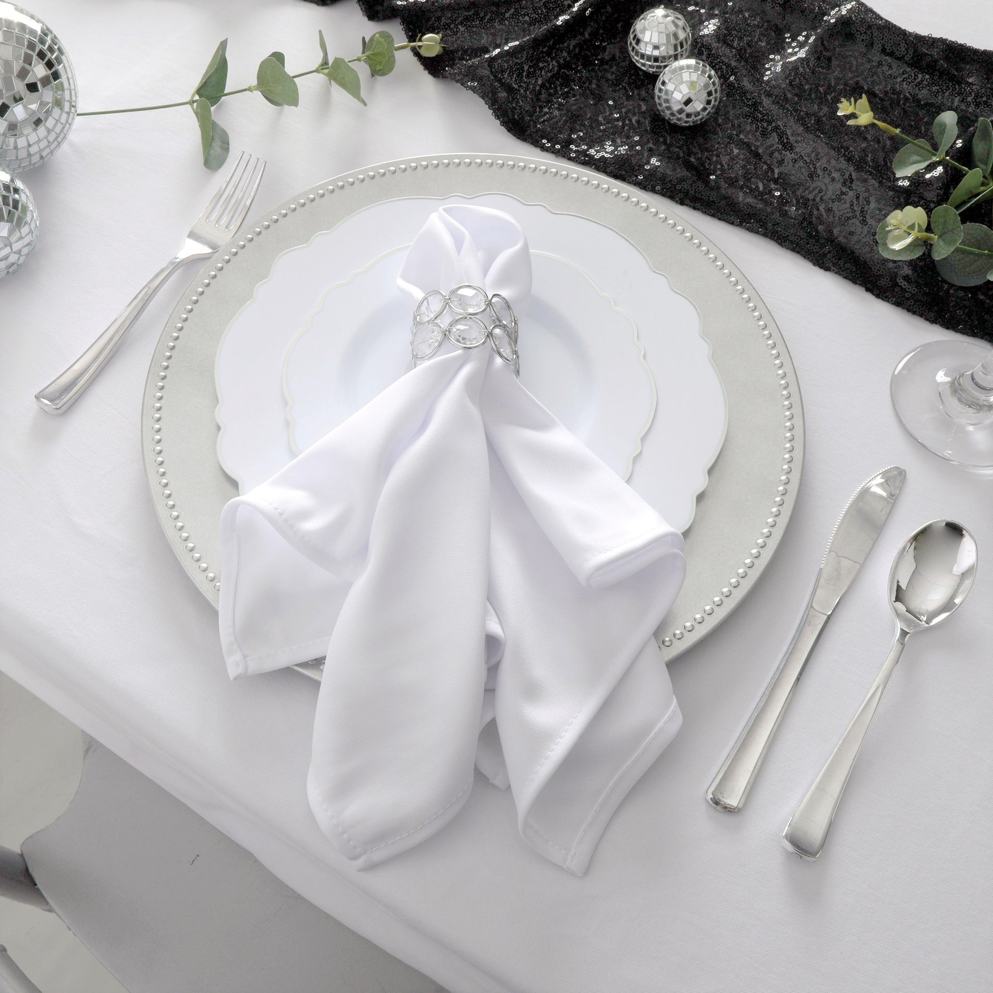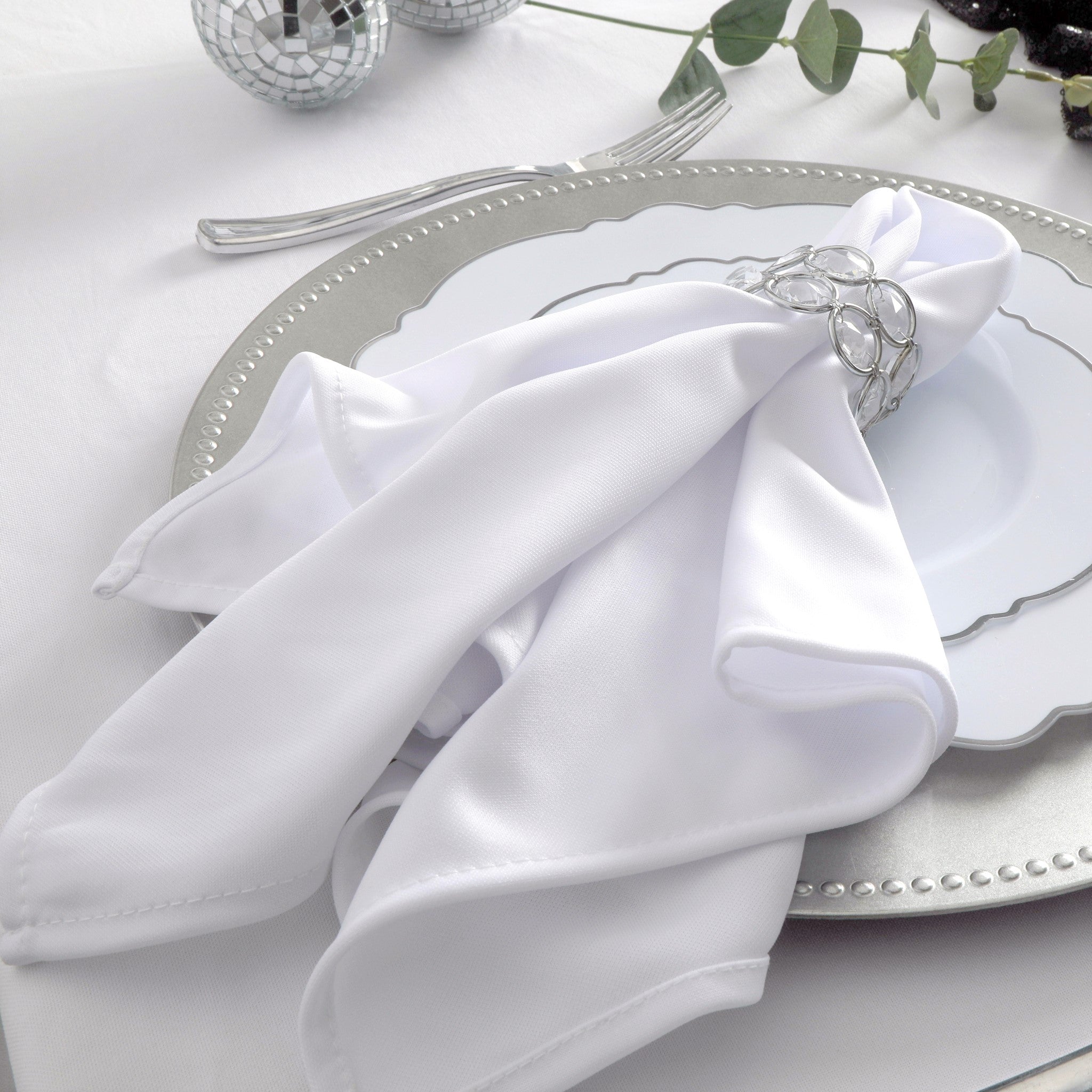 Made of white scuba material, our 20 x 20 inch napkins come in a pack of five for easy event coordination.