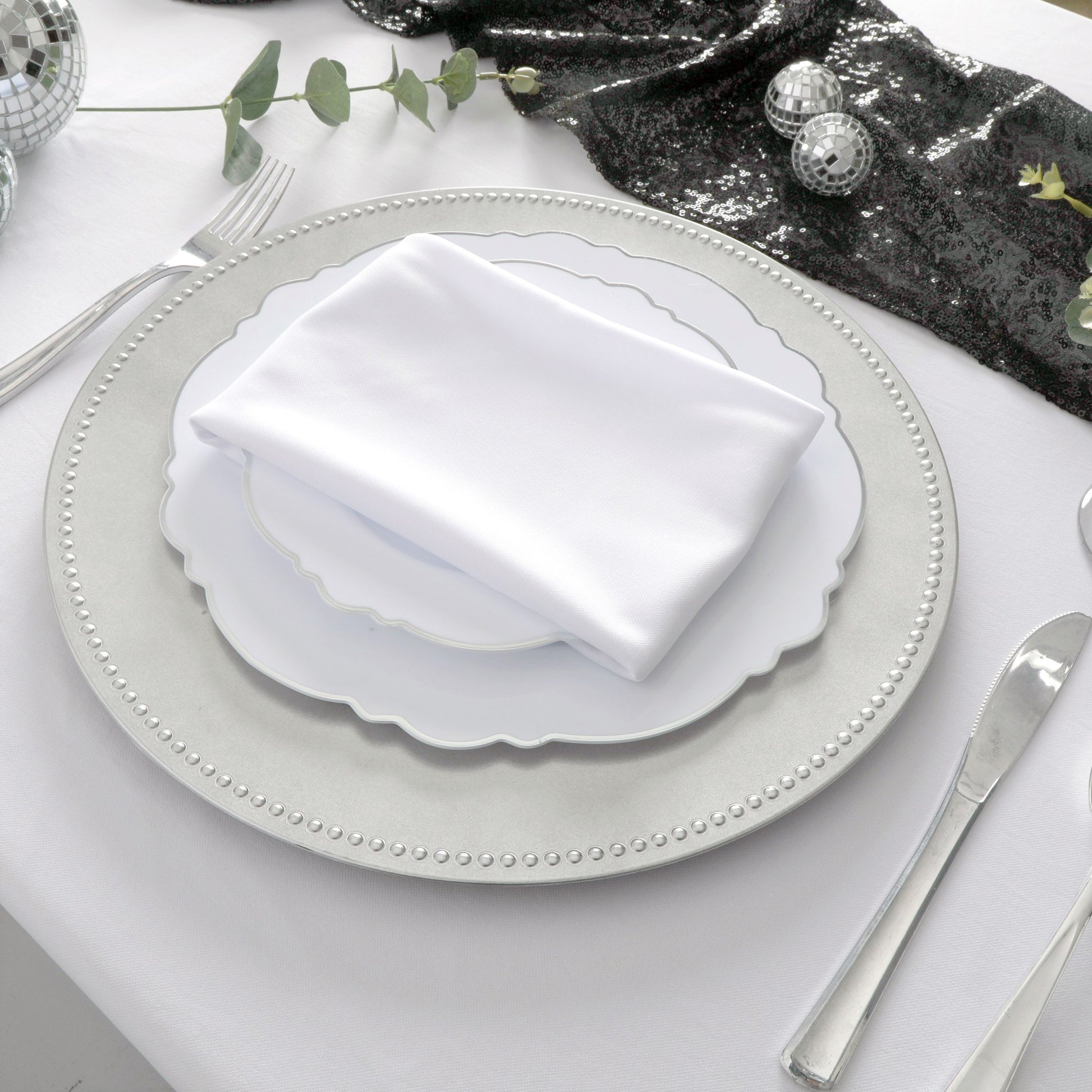 Add a touch of elegance and sophistication to the place settings at your next occasion by using our elegant white scuba napkin. These wholesale linen napkins are designed to enhance any event, whether it's a wedding, a corporate gathering, or a birthday celebration.