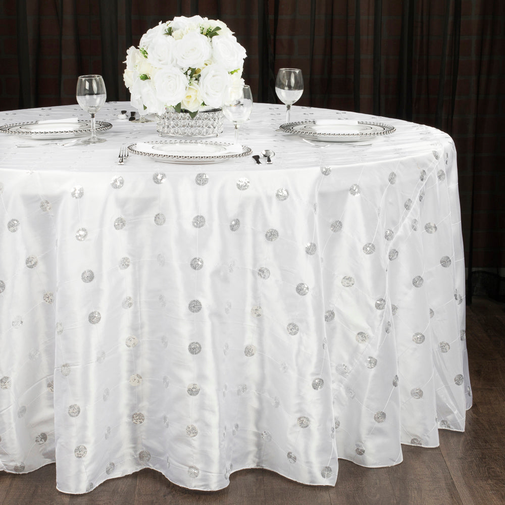Our White Sequin Embroidery Taffeta 120 Round Tablecloth