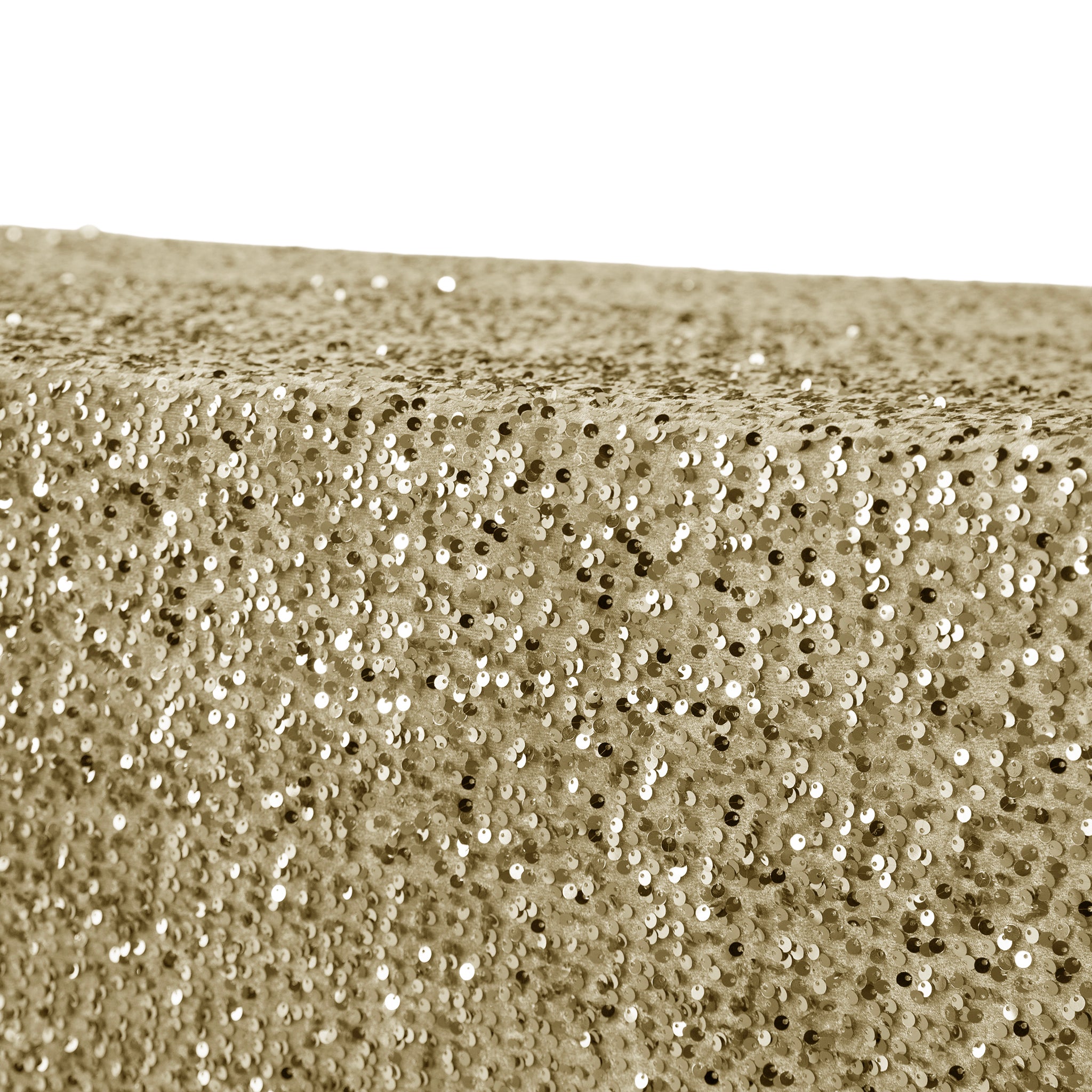 A champagne rectangular sequin velvet tablecloth provides the backdrop for opulence and glamour. Made from velvet adorned with shiny sequins, this table cover offers soft luxury and sparkling brilliance in one. The velvet material provides a textured base, while the sequins sewn across the fabric produce a dazzling finish.