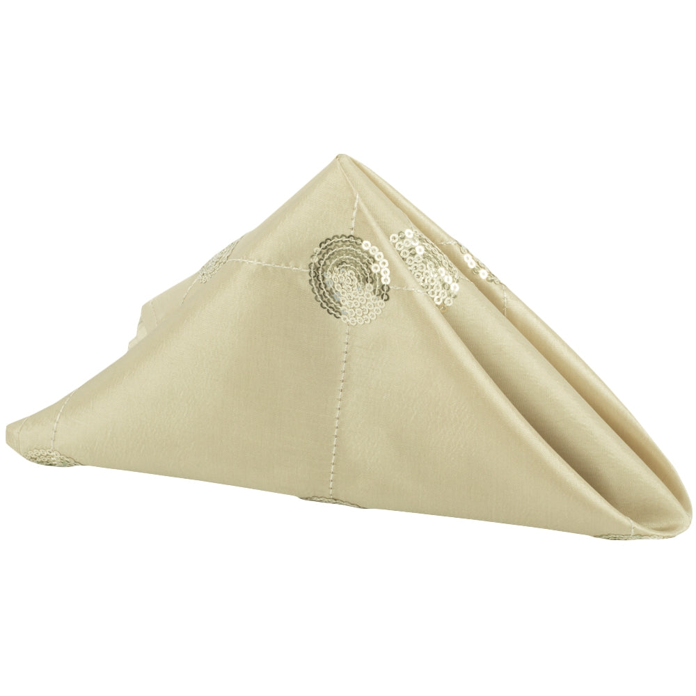 Taffeta napkins will ensure your event looks luxe and classic! Our taffeta is a high-end fabric that is true to color, lightweight, and has a smooth yet textured surface to provide a soft sheen throughout your venue. Candle and soft light reflect well on taffeta to create the perfect ambiance for your special day! Each napkin features a hand sewn quarter-size circle pattern to give your event some additional personality. Our napkins also feature hemmed edges so they're ready to use, easy to decorate with, and are stress-free. Wholly versatile, these napkins can be dressed up for a chic wedding or dressed down for a low-key get together!