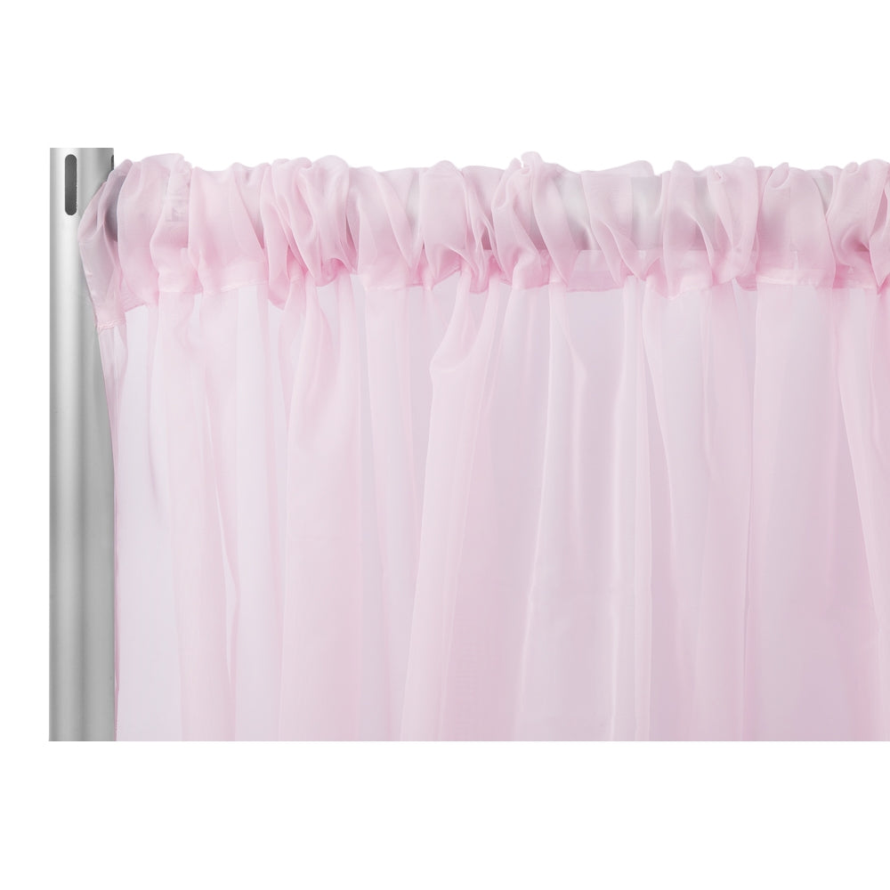 Order now and experience the perfect blend of style, safety, and sophistication with our Pink Sheer Voile Flame Retardant 10ft H x 118" W Drape/Backdrop Curtain Panel!