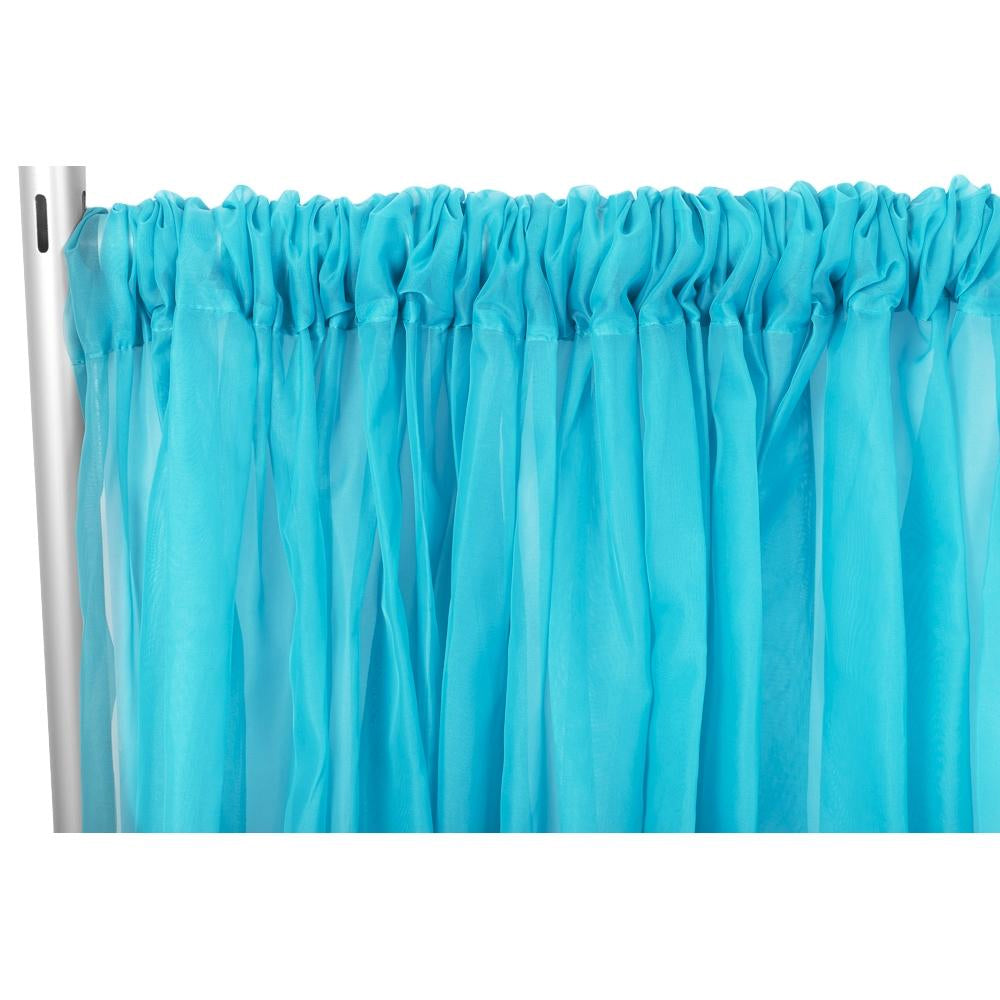 Dive into the refreshing beauty of Aqua Blue Sheer Voile Flame Retardant 12ft H x 118” W Drape Panels. Aqua Blue, a color reminiscent of clear ocean waters, adds a touch of tranquility and serenity to your events. Create a calm and inviting atmosphere, symbolizing purity and the soothing essence of water.