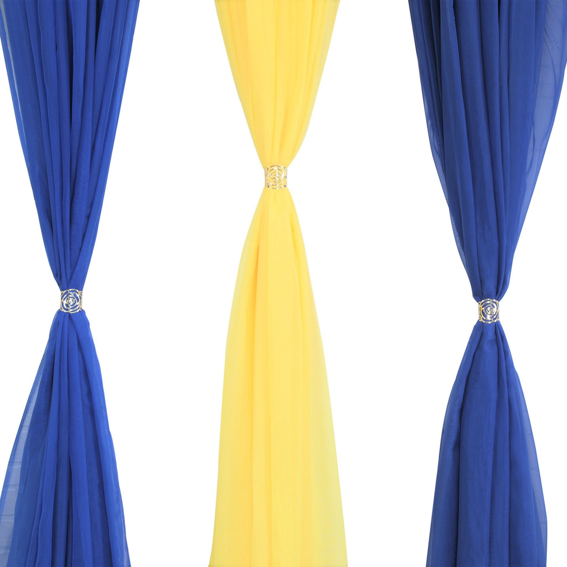 Our sheer curtains are crafted from high-quality sheer voile material, giving them a delicate and elegant appearance. The sheer voile fabric used is aesthetically pleasing and provides a light and airy feel to any event. The canary yellow sheer voile drape panels add a touch of charm, creating a backdrop that will leave a lasting impression on your guests.