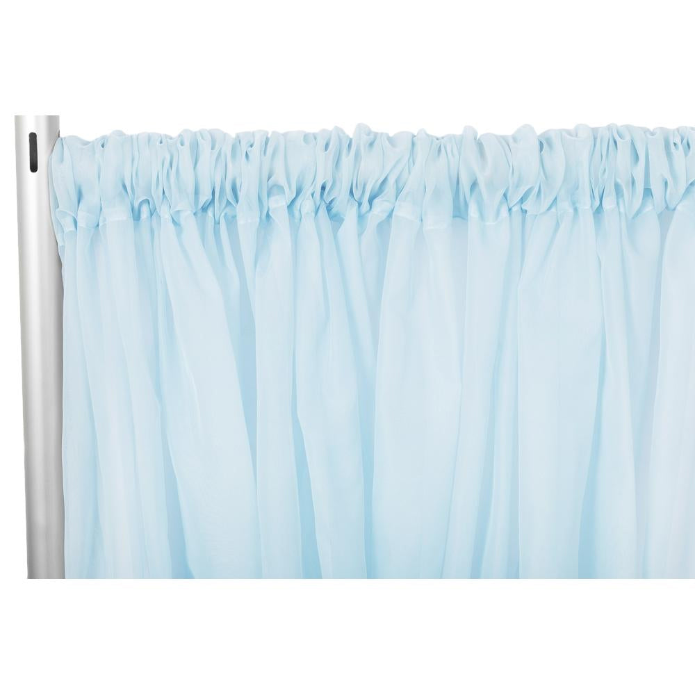 Introducing the Elegant Sheer Voile Flame Retardant (FR) 14ft H x 118" W Drape/Backdrop Curtain Panel in Baby Blue