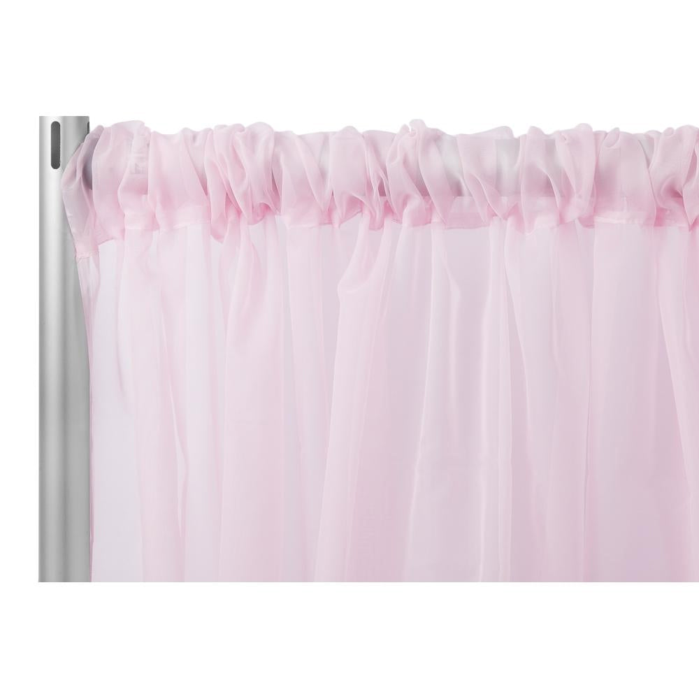 From the needs of tradeshow professionals to wedding planners, this pink Sheer Voile Flame Retardant drape/backdrop makes an elegant option for any event or occasion. This backdrop curtain fabric can be used for any decoration projects including elegant wedding decor, photo booths, showrooms, stage or theater backdrops, draping, runners, and more!