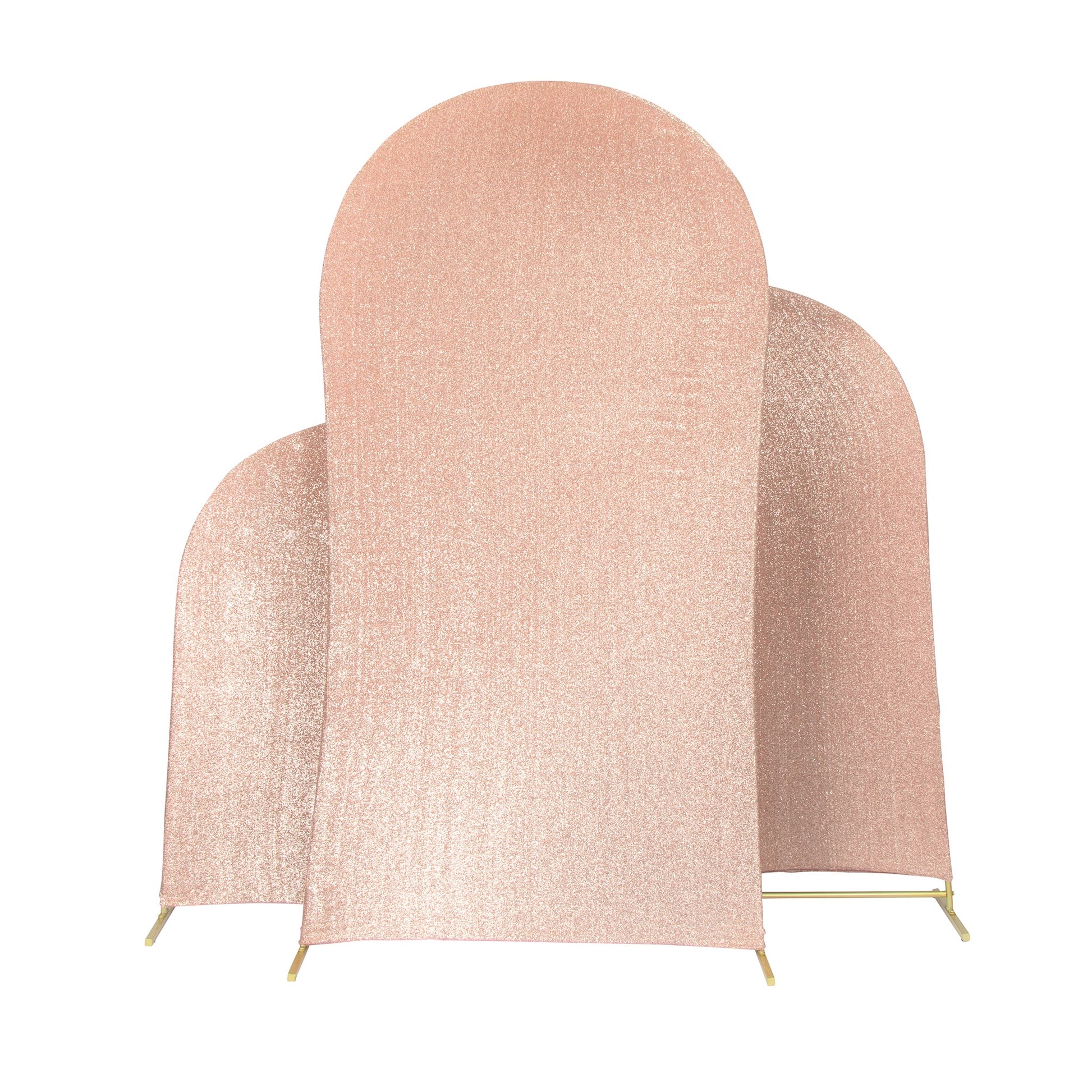 Looking for the perfect backdrop stand arch covers? Whether setting up an arch backdrop for a wedding ceremony, event reception, birthday party, shower, or any other special occasion, our Shimmer Spandex Arch Covers for Chiara Frame Backdrop 3pc/set - Blush/Rose Gold creates the perfect party backdrop for pictures.