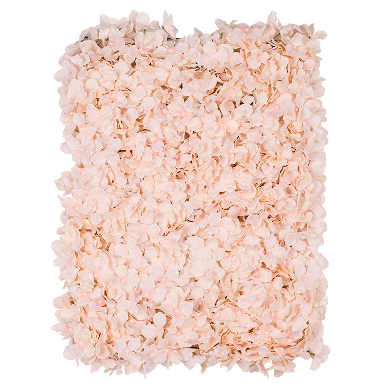 Many people like the look of a flower wall, but the cost of fresh flowers can be enormous! If a fresh flower wall doesn't fall within your budget, try our Silk Hydrangeas Flower Wall Backdrop Panels. Each panel is carefully constructed from beautiful, realistic-looking silk hydrangeas that will provide a contemporary and luxurious touch to your event. The silk hydrangeas are connected to a plastic grid backing that is durable and bendable. Each Silk Hydrangeas Flower Wall Backdrop Panel measures approx. 16" x 24" with flowers that sit closely together so there is no room for obvious space gaps.