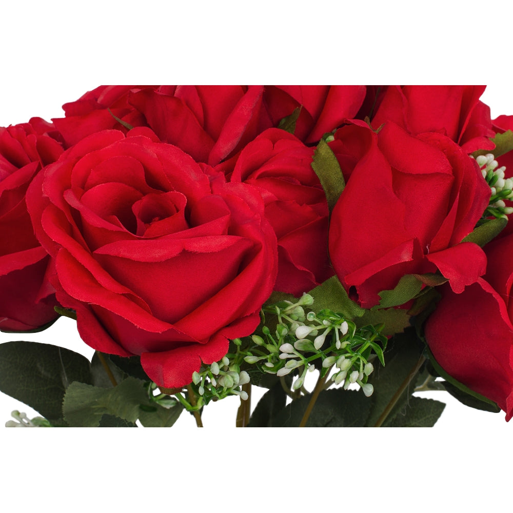 Fall in love with our bulk Silk Rose Bushes! These artificial rose buds bring all of the sophisticated grace you desire to your next event without a large price tag or having to tend to them. Each faux Silk Rose Bush is made of voluminous, layered roses that are connected to durable stem featuring artificial leaves. Whether you incorporate these beautiful roses into a larger design or display them on their own, each stem is truly breathtaking so you can dress your space up on a budget. Make the most of these artificial rose heads by adding them to a larger centerpiece or bouquet arrangement, as a backdrop or archway accent, or even as part of a DIY project. Wholesale floral stems are perfect for a wide variety of events, including wedding receptions, baby showers, bridal showers, sweet 16 celebrations, and more. Faux floral stems are easily one of the hottest and most affordable bulk decor trends you don't want to miss out on!