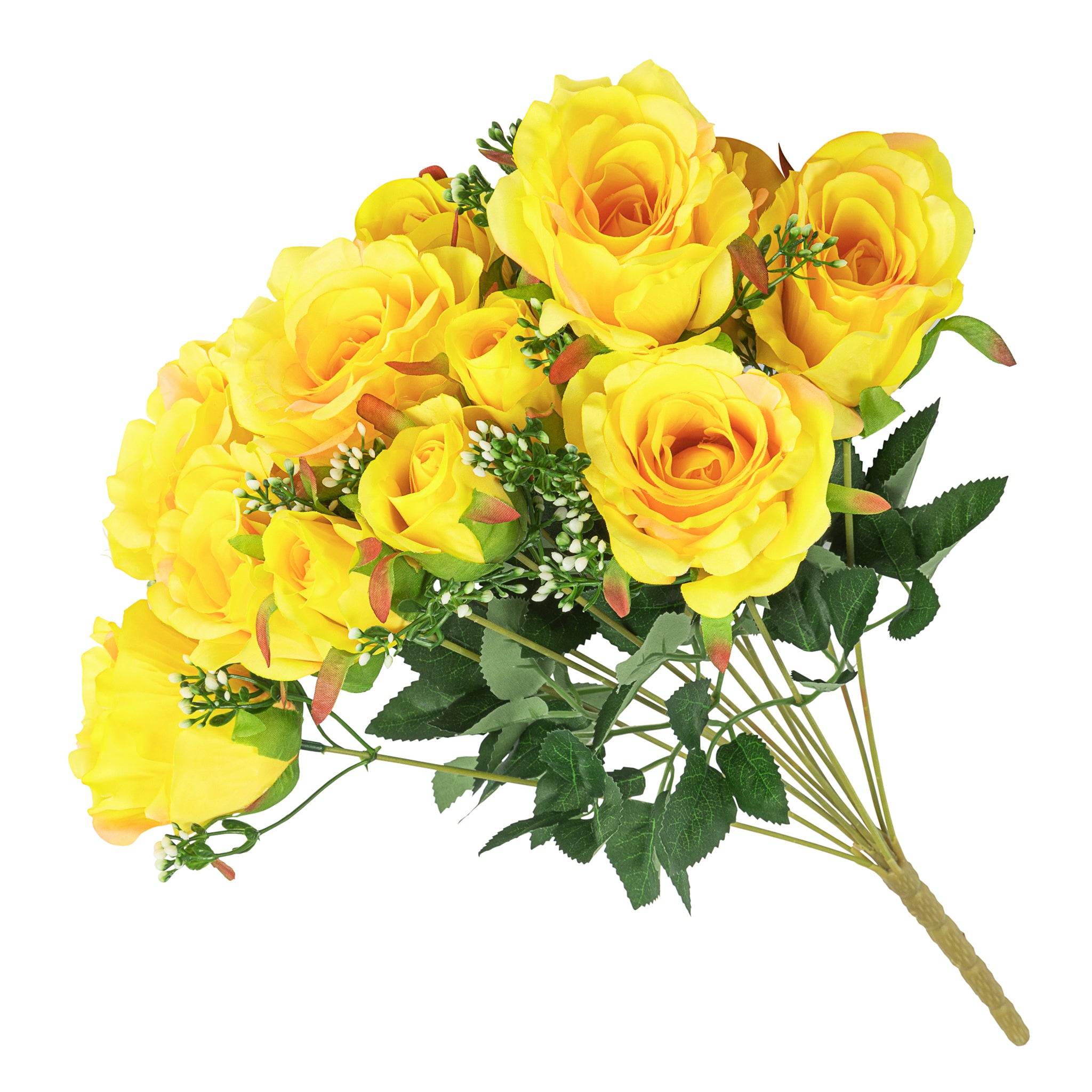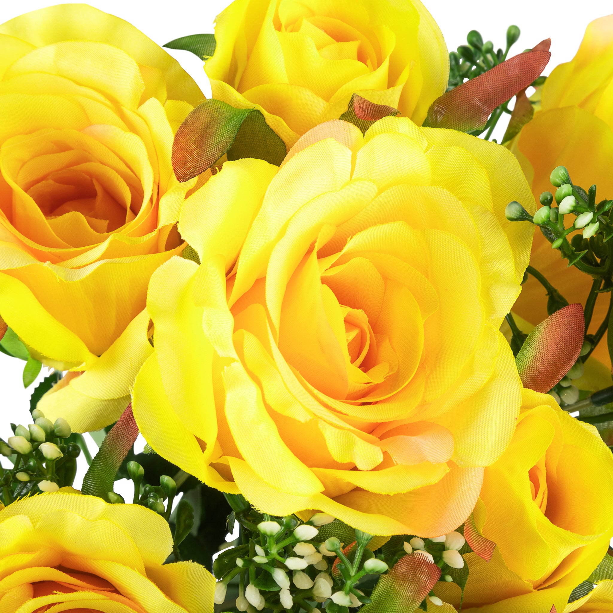 Fall in love with our bulk Silk Rose Bushes! These artificial rose buds bring all of the sophisticated grace you desire to your next event without a large price tag or having to tend to them. Each faux Silk Rose Bush is made of voluminous, layered roses that are connected to durable stem featuring artificial leaves. Whether you incorporate these beautiful roses into a larger design or display them on their own, each stem is truly breathtaking so you can dress your space up on a budget. Make the most of these artificial rose heads by adding them to a larger centerpiece or bouquet arrangement, as a backdrop or archway accent, or even as part of a DIY project. Wholesale floral stems are perfect for a wide variety of events, including wedding receptions, baby showers, bridal showers, sweet 16 celebrations, and more. Faux floral stems are easily one of the hottest and most affordable bulk decor trends you don't want to miss out on!