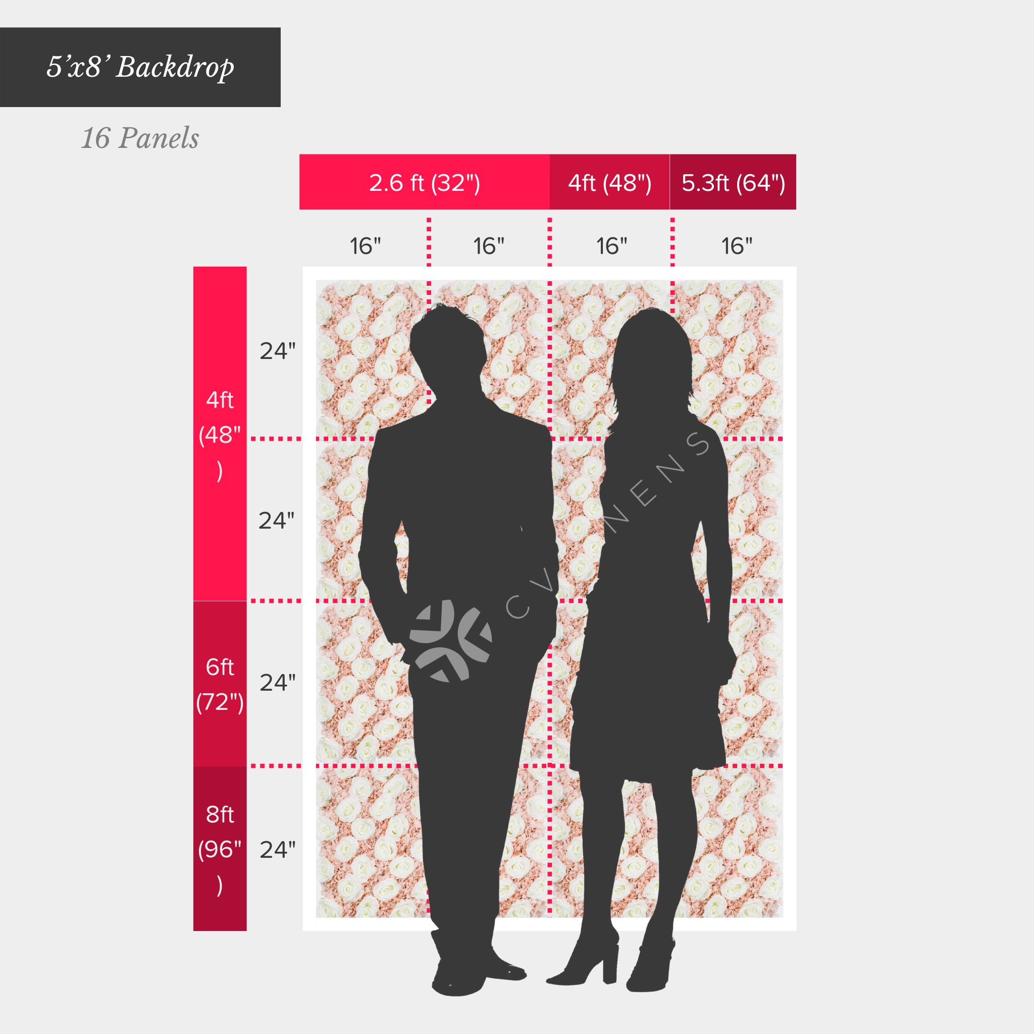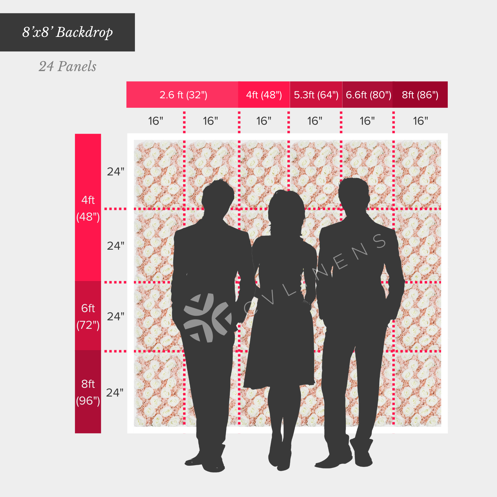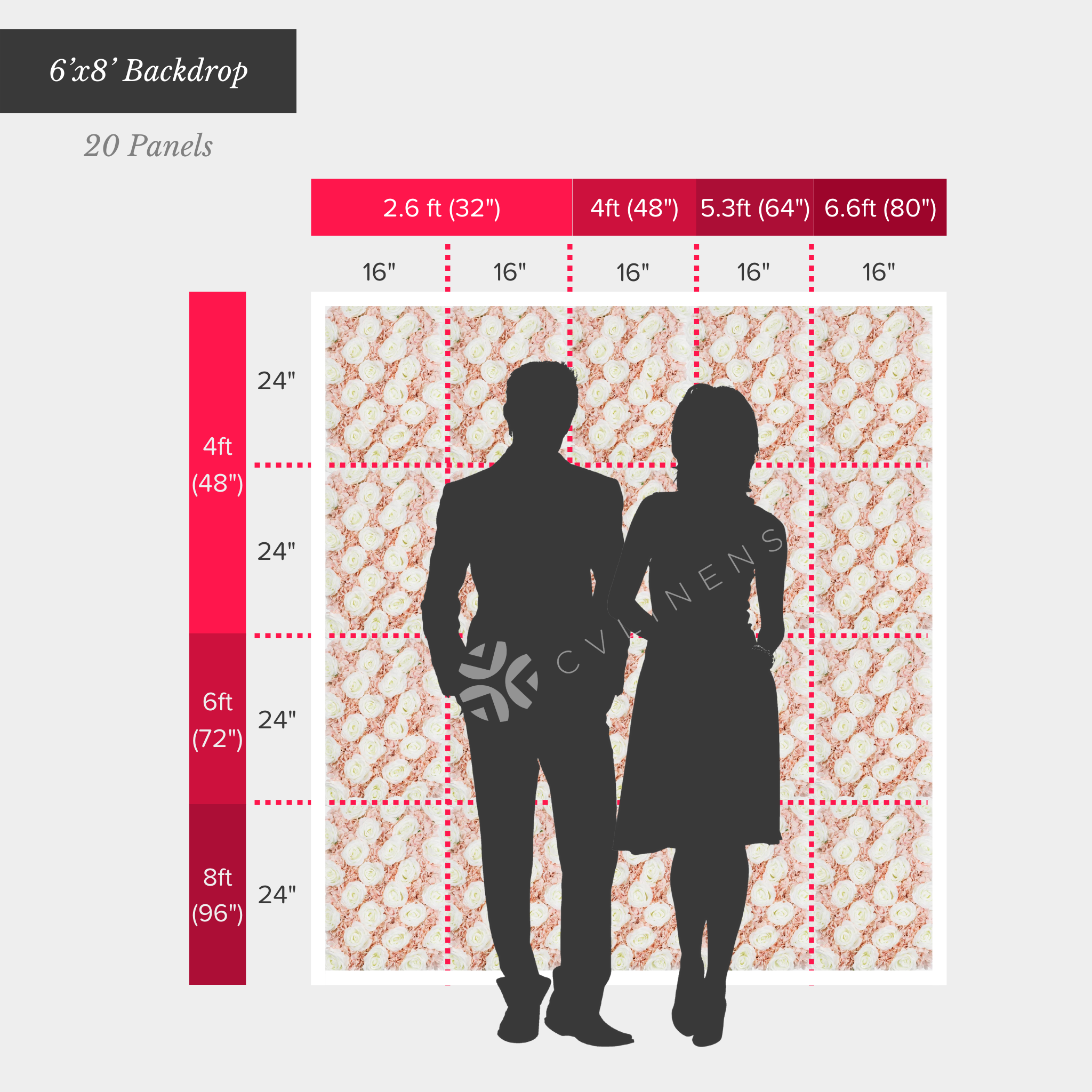 Take the time to make the most important areas of your event stand our with our Silk Roses/Hydrangeas Flower Wall Backdrop Panels.These gorgeous backdrops are perfect for behind sweetheart, cake, dessert, guest of honor, and head tables! They're also extremely popular for photography and photo booth backdrops. Use them for wedding receptions, bridal showers, baby showers, quinceaneras, anniversary parties - you name it, they'll fit in!