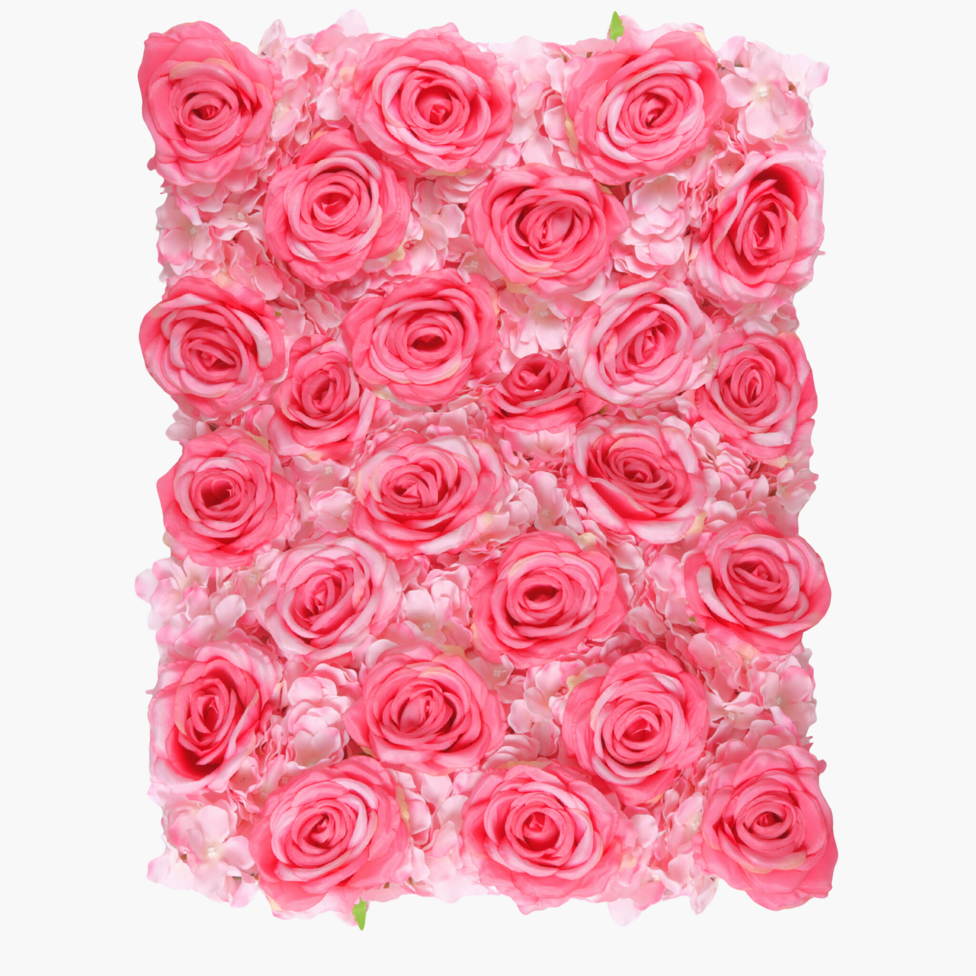 Many people like the look of a flower wall, but the cost for fresh flowers can be enormous! If a fresh flower wall doesn't fall within your budget, try our Silk Roses/Hydrangeas Flower Wall Backdrop Panels. Each panel is carefully constructed from beautiful, realistic-looking silk roses and hydrangeas that will provide a contemporary and luxurious touch to your event. The silk roses and hydrangeas are connected to a plastic grid backing that is durable and bendable. Each Silk Roses/Hydrangeas Flower Wall Backdrop Panel measures approx. 16" x 24" with flowers that sit closely together so there is no room for obvious space gaps.