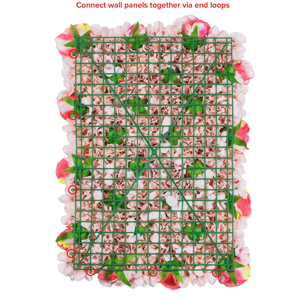 Worried about set up? Don't be! Assembling our Silk Rose/Hydrangeas Flower Wall Backdrop Panels couldn't be easier. Before purchasing, measure out the footage of the space you'd like to cover. Once you have the total area order how many panels you'll need to cover up the area. As mentioned, our Silk Rose/Hydrangeas Flower Wall Backdrop Panels feature a bendable plastic grid backing, so cutting them down to size is no challenge with a pair of scissors. Once your panels are prepped simply use command hooks, thumbtacks, nails, screws, or staples to attach panels to a solid wall. For freestanding systems, zip ties, pipe cleaners, floral wire, Velcro straps or S-hooks can be used to secure them to the uprights and crossbars. The method you use to hang your Silk Rose/Hydrangeas Flower Wall Backdrop Panels will depend on your personal preference and backing.