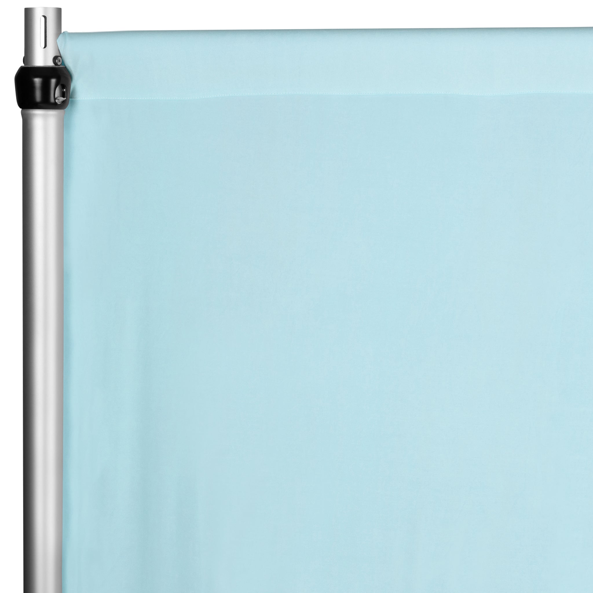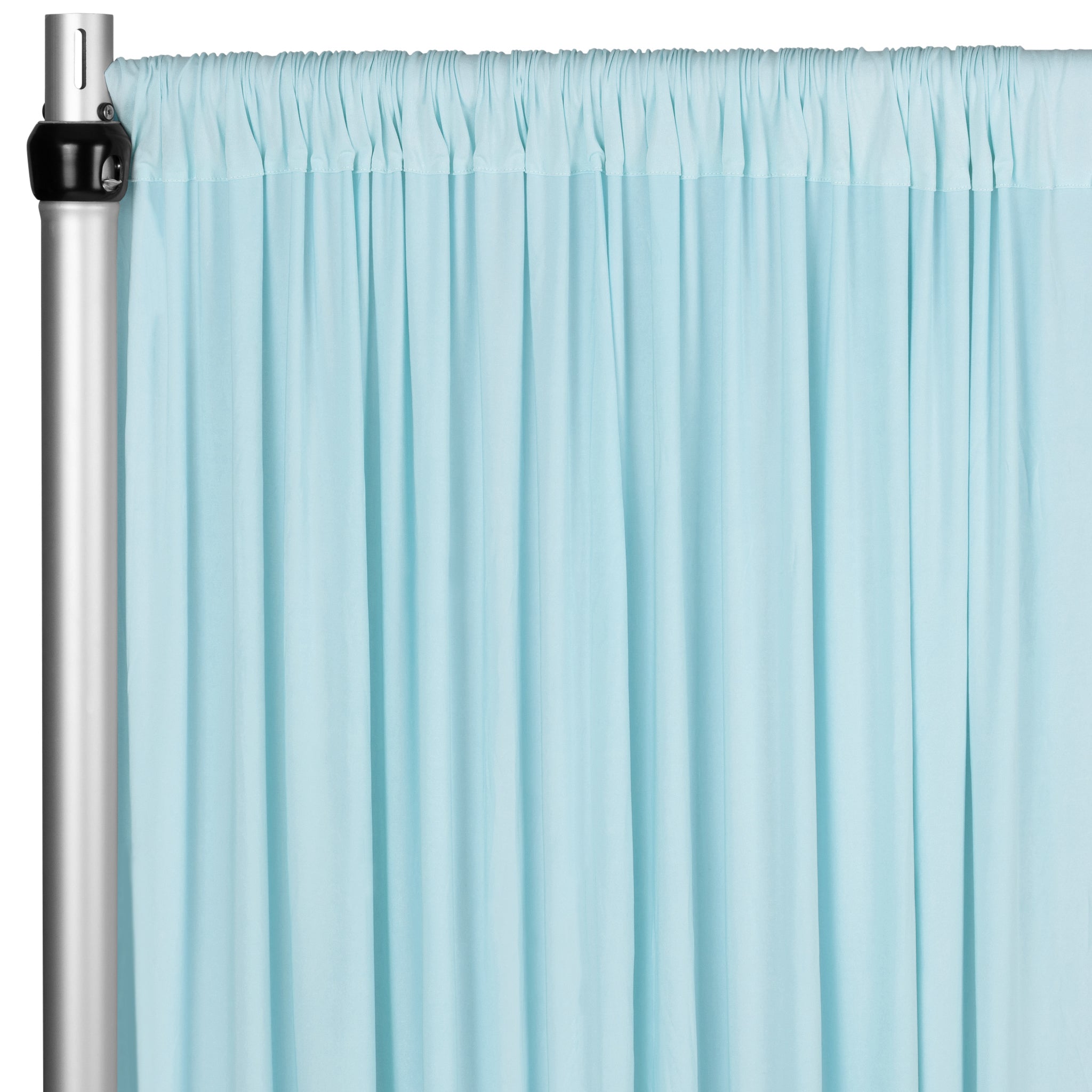 Perfect for both indoor and outdoor events, our 14ft Spandex 4-Way Stretch Drape Curtain in Baby Blue brings a sleek design element to your special occasion settings. This luxe drape imbues a sophisticated, tailored look for any event including weddings and trade shows to serve as anything from a stage backdrop to a stellar photo booth scene!
