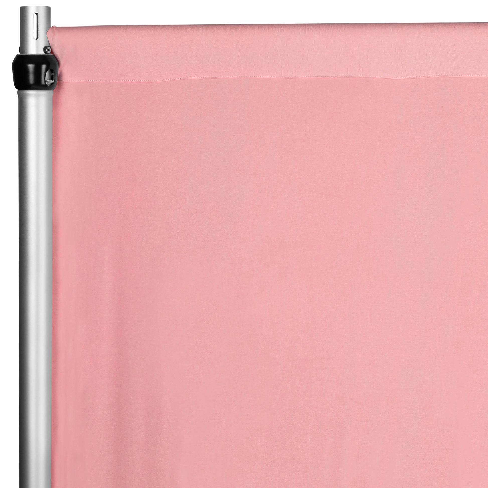 Begin by setting up a pipe and drape stand as the sturdy base for your display. Then, drape the pink spandex 4-way stretch backdrop curtain to create a luxurious canvas that establishes the vibe and feel of your event.