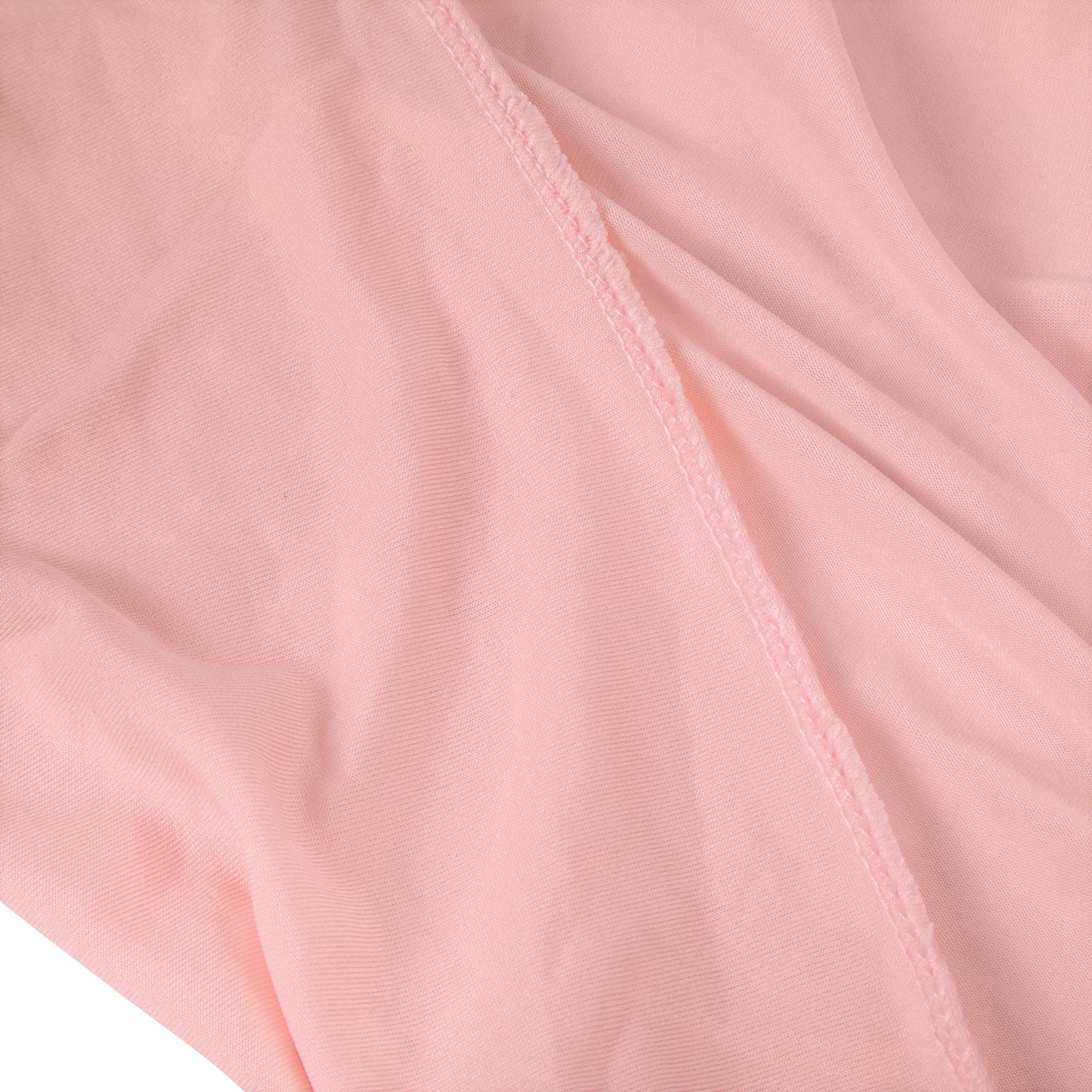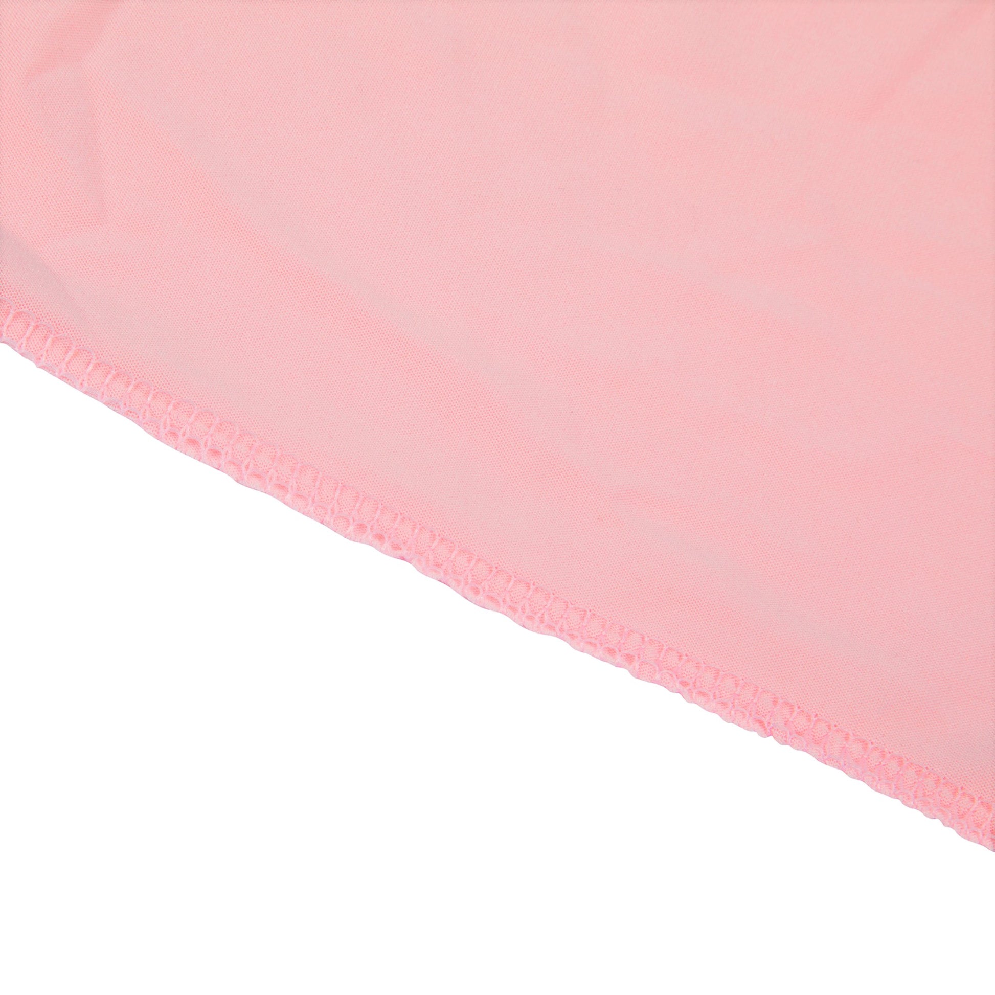 This round stand cover is made from stretch spandex fabric. The spandex material makes it easier to place over the stand frames and helps them remain practically wrinkle-free for a smooth and professional look.