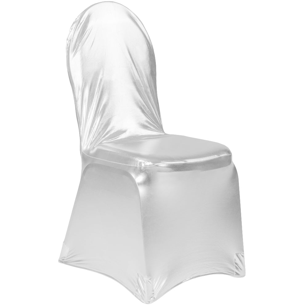 Metallic Silver spandex banquet chair covers provide the perfect canvas for showcasing your event’s unique style. Your event design will reach new heights when you pair them with complementing linens from CV Linens™.