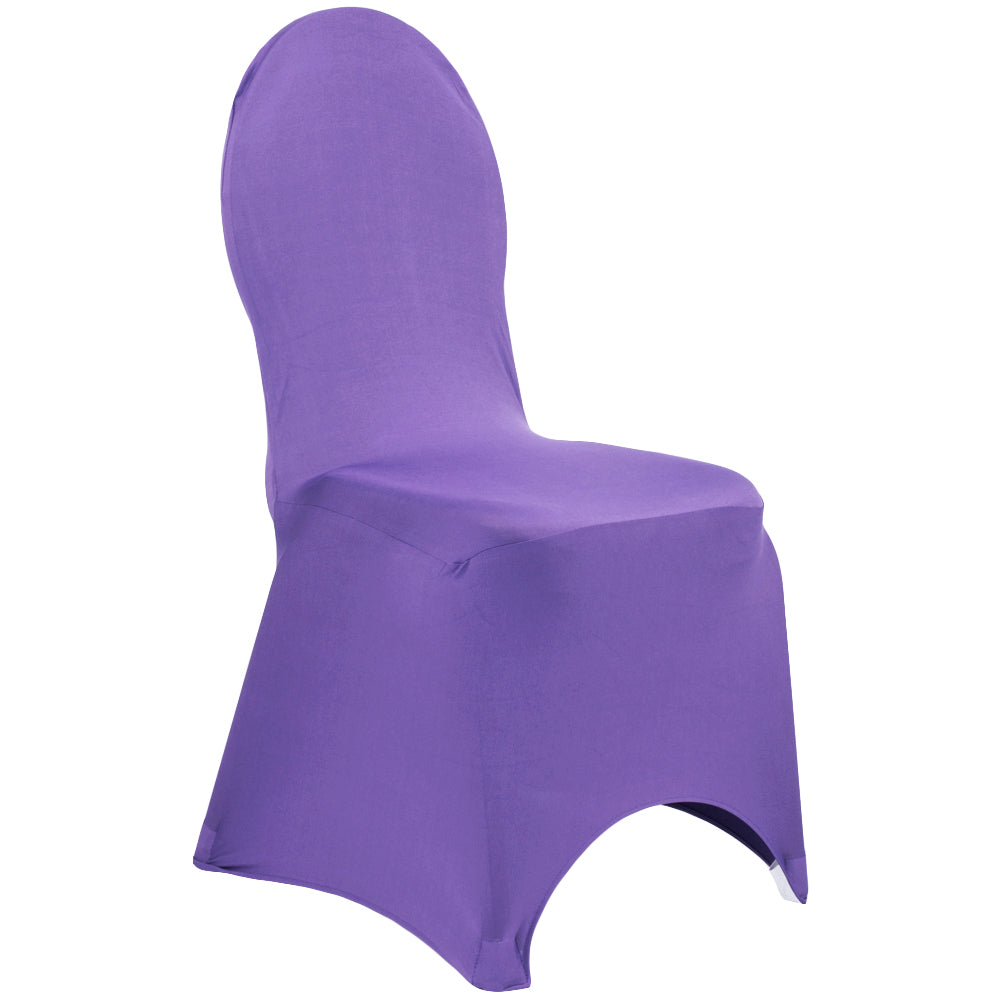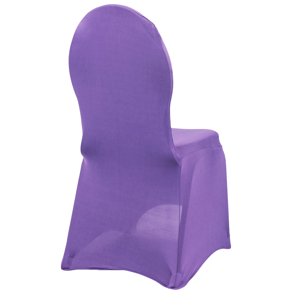 Our purple spandex banquet chair cover is going to transform your event into a celebration of regal elegance. Designed to deliver a luxurious look, these stretchable chair covers hug banquet chairs to create a sleek aesthetic. With their rich and vibrant color, they make a bold statement and add an air of opulence to any venue.