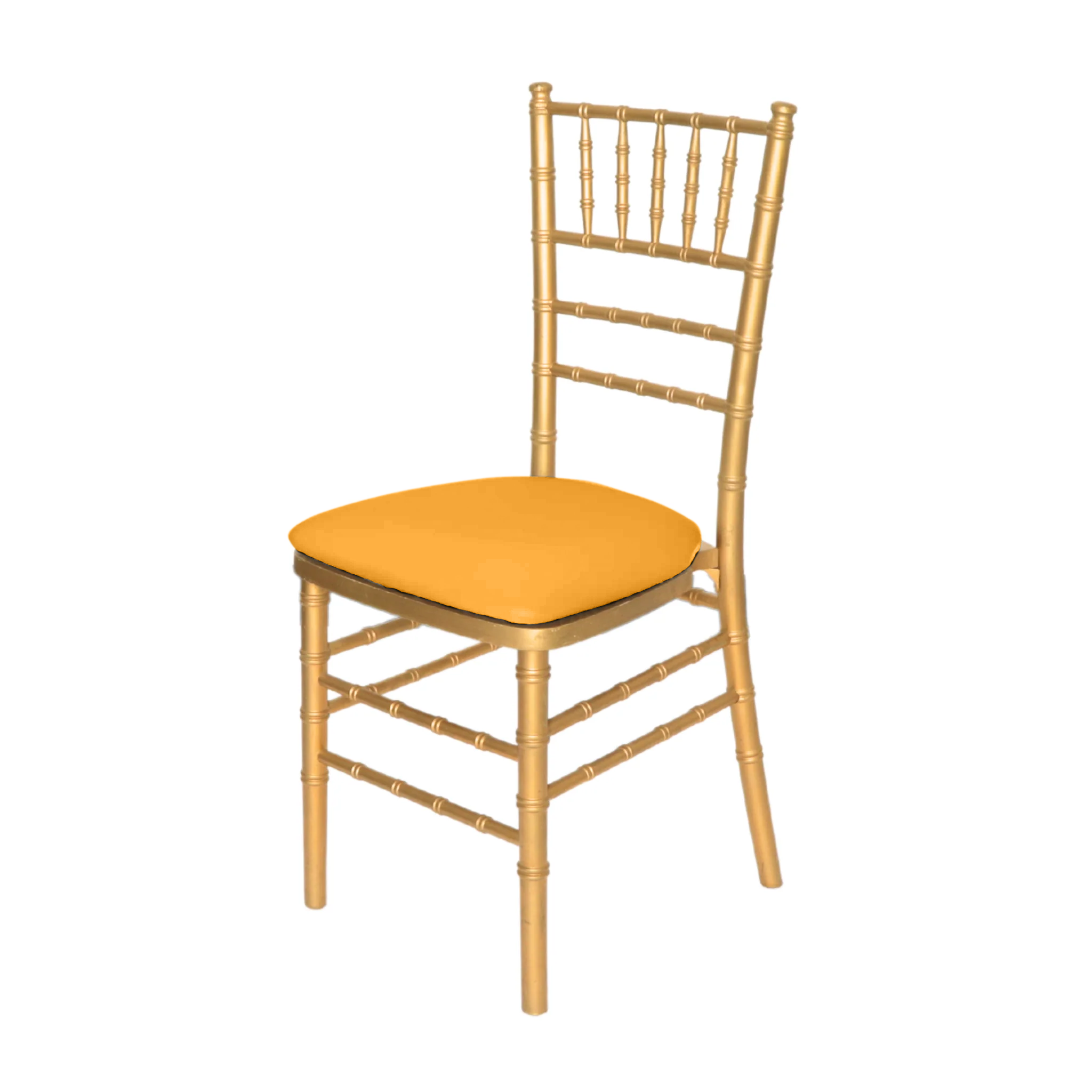 Canary yellow radiates a lively and cheerful vibe, creating an ambiance of positivity, energy, and happiness. This color symbolizes joy, optimism, and enlightenment, which is a perfect choice for events that aim to convey a sense of celebration and brightness. The Canary Yellow Seat Pad Cover adds a burst of color for weddings, outdoor gatherings, or events with a summer theme.