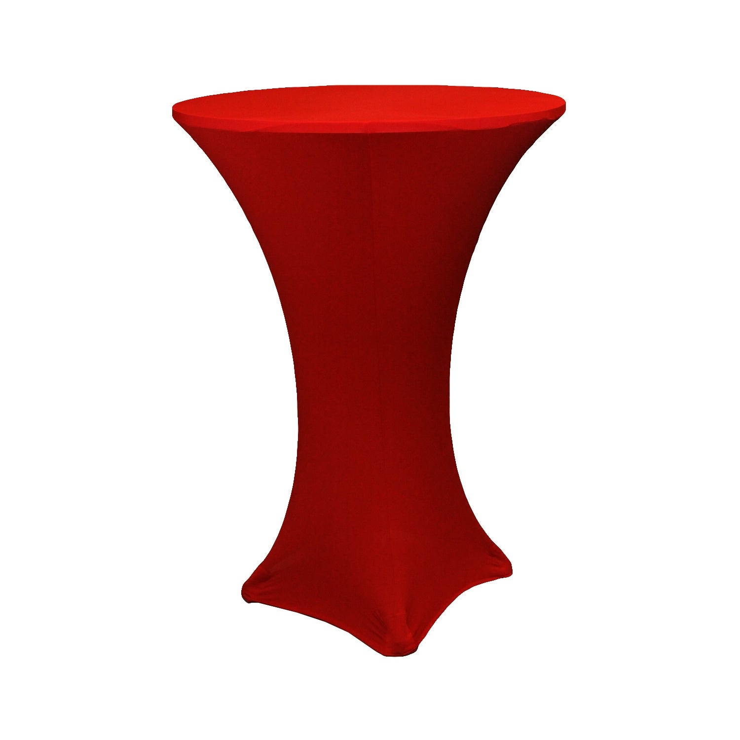 The stretchy nature of the apple red spandex cocktail table covers offers many possibilities for versatility. While it is made for 30-inch round cocktail tables, the cover can be used for slightly varying table sizes and shapes. No worries if the table is a bit different than you expected.