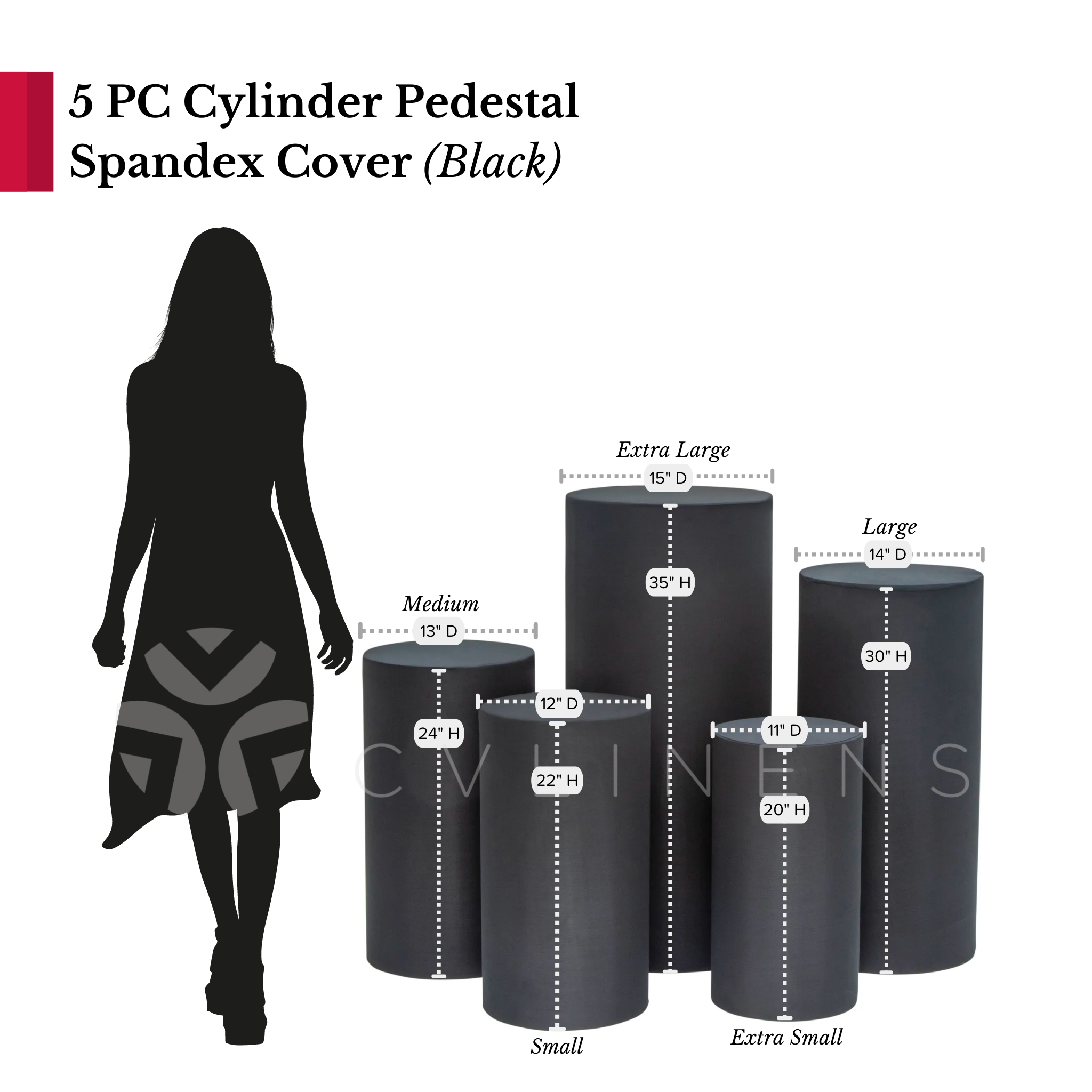 Spandex Pillar Covers for Metal Cylinder Pedestal Stands 5 pcs/set - Black