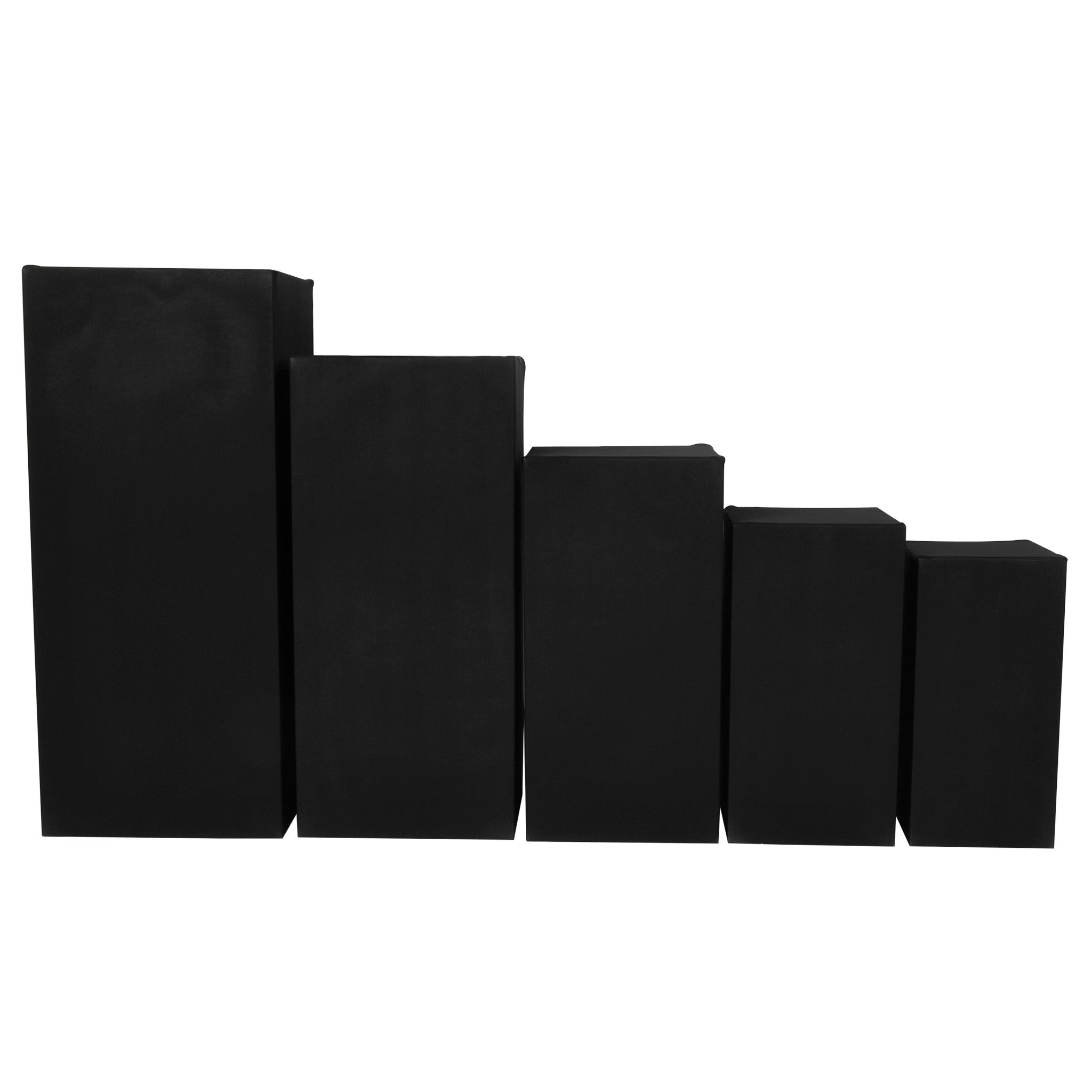 To add more style to your backdrop decor, you can pair these Spandex Pillar Covers for Metal Cylinder Pedestal Stands 5 pcs/set in Black with our easy to use stretch spandex tablecloths, Chiavari chair covers, arch backdrop covers, among other event decorations.