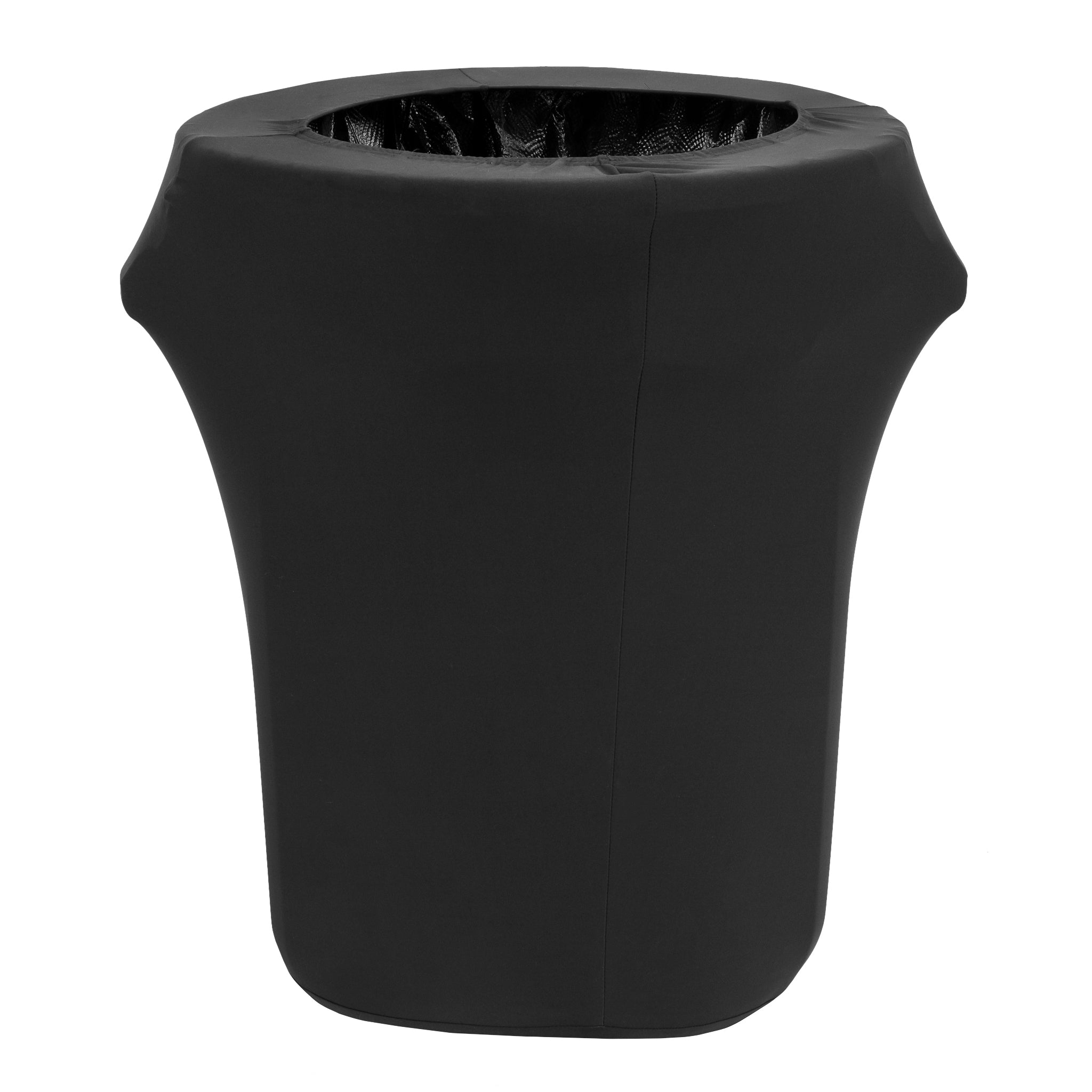 Give your venue the full beauty treatment with our Spandex Stretch Trash Bin Cover 32 Gallon Round - Black! While maintaining a mess-free reception means having a trash can handy, that doesn't mean it has to be an eyesore. This winkle free stretch trash bin cover fits a 32 gallon can with ease, serving to hide unsightly markings, brand advertisements, and dirt. By dressing up these garbage bins, the receptacles seamlessly complement with your decor, effectively blending in with the scenery. It's an aspect that won't receive notice until its use is required.
