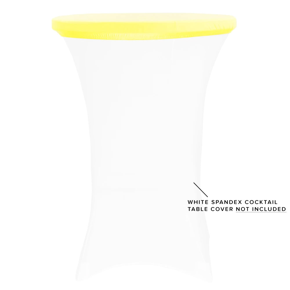 Upgrade your cocktail tables with wholesale Spandex Table Topper/Caps! Effortlessly add additional color to your spandex cocktail table covers by slipping one of our Spandex Table Topper/Caps over the tabletop. Each table cap is made from our 100% high-quality spandex (commercially known as Lycra) and features a durable stretch band on the inside to accommodate 30"-36" round tabletops. Not only are these table caps a great way to incorporate more of your decor colors, but they're also a perfect way to protect your tabletop from spills or stains. Pick up matching colors to your existing wholesale spandex cocktail table covers to effortlessly protect your investments.
