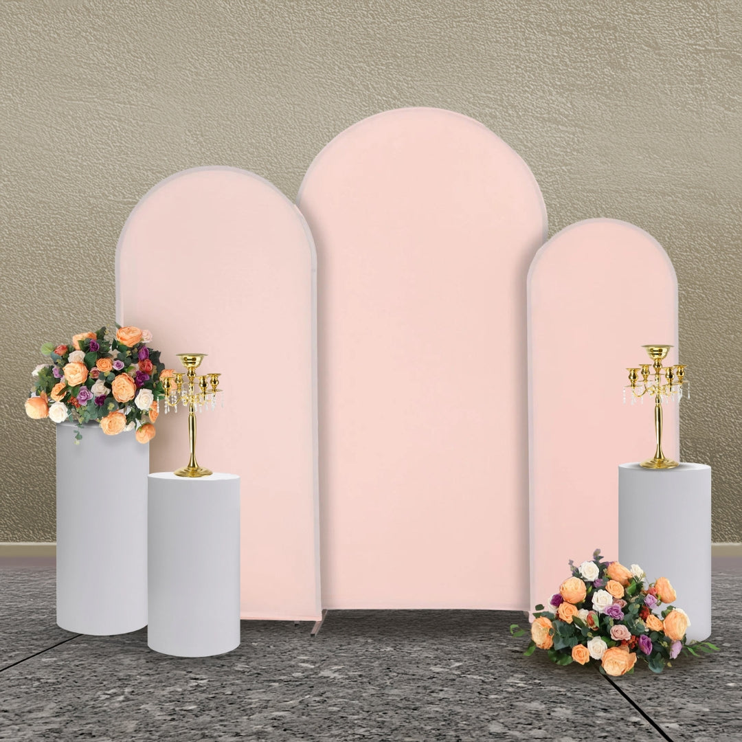 Looking for the perfect backdrop stand arch covers? Whether setting up an arch backdrop for a wedding ceremony, event reception, birthday party, shower, or any other special occasion, our Spandex Covers for Trio Arch Frame Backdrop 3pc/set- Blush/Rose Gold creates the perfect party backdrop for pictures.