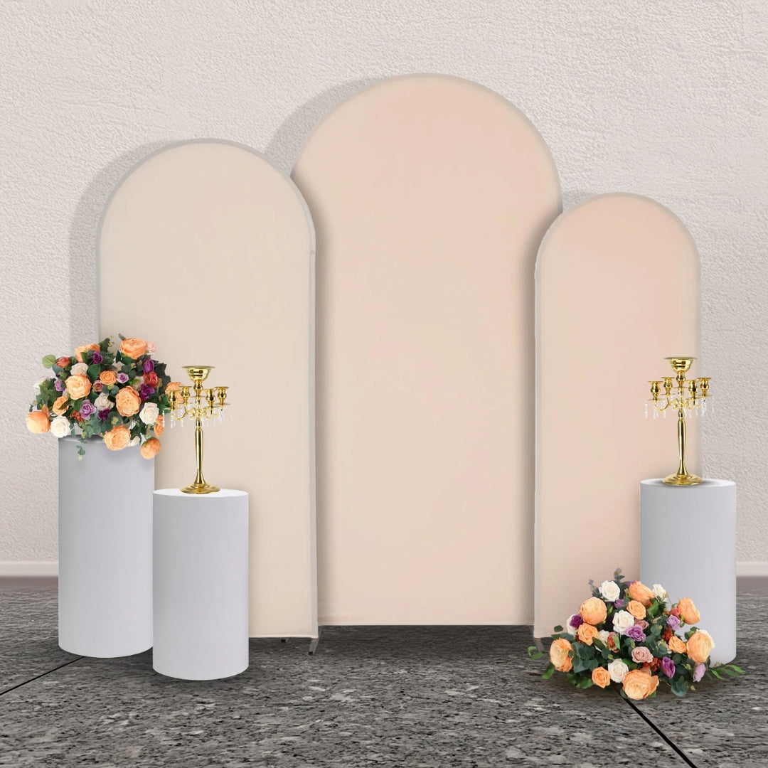 Looking for the perfect backdrop stand arch covers? Whether setting up an arch backdrop for a wedding ceremony, event reception, birthday party, shower, or any other special occasion, our Spandex Covers for Trio Arch Frame Backdrop 3pc/set- Champagne creates the perfect party backdrop for pictures.