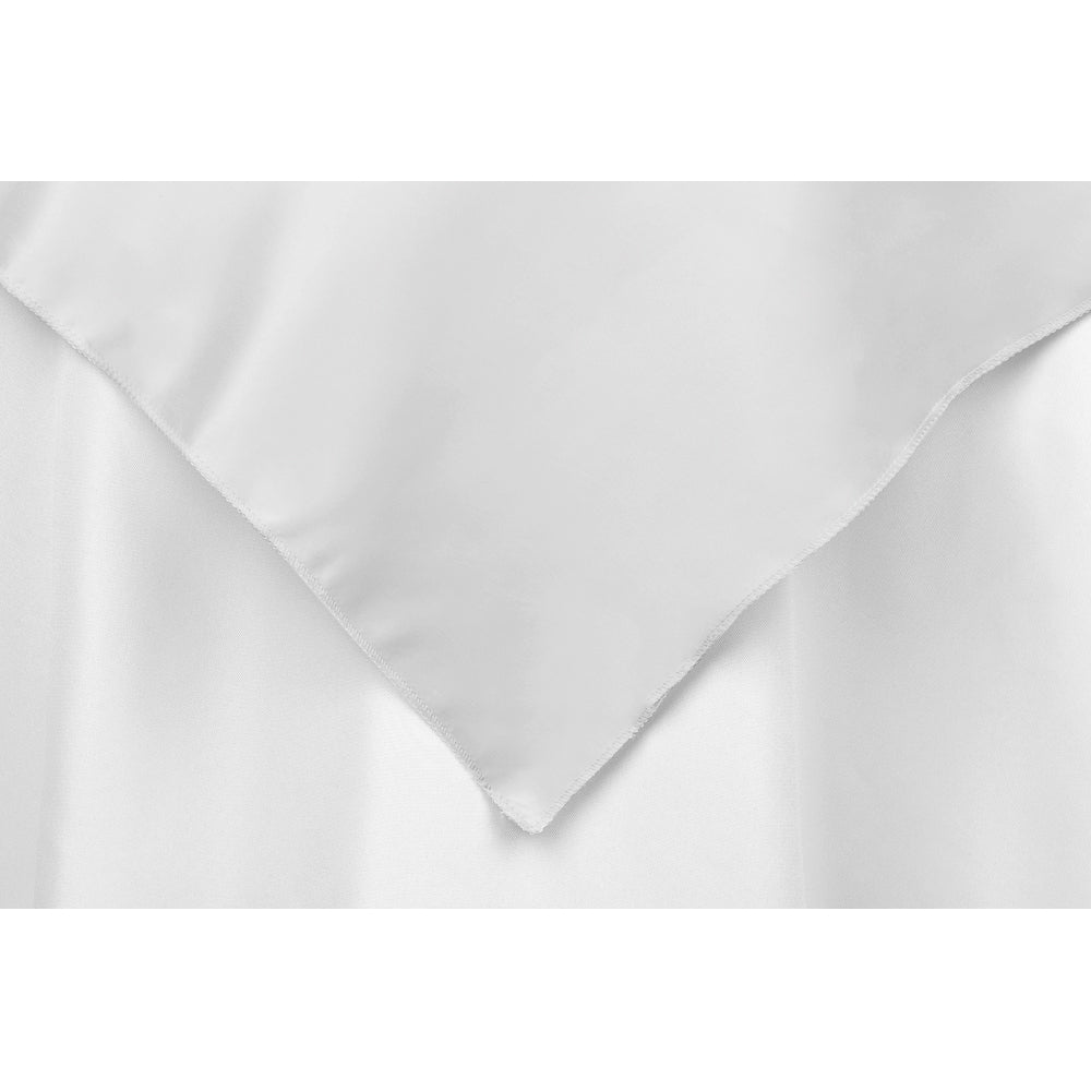 Our white square 90"x90" Lamour satin table overlay is the epitome of timeless elegance and sophistication. This classic, pure hue exudes an air of grace and refinement, making it the perfect choice for a wide range of events, from weddings to upscale corporate functions.