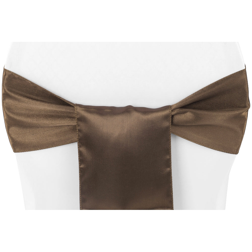 Our chocolate brown sashes are made from premium satin fabric. This material has a beautiful sheen that catches the light and gives your setup a polished look. Satin also matches well with other event linens and decor, so it is simple to coordinate with your tablecloths, runners, and flower arrangements.