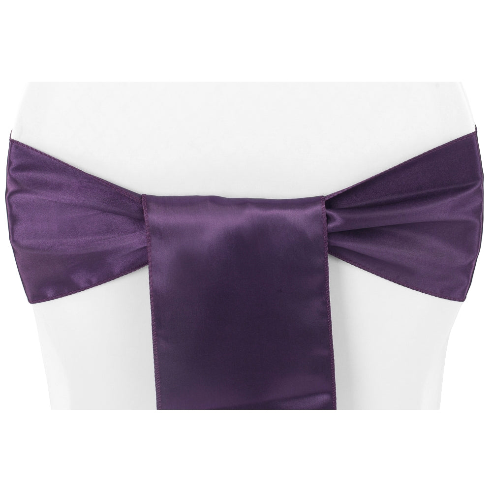 That’s where our standard satin eggplant/plum chair sashes come in. These sleek, silky accents add charm and polish, transforming plain seating into focal points.