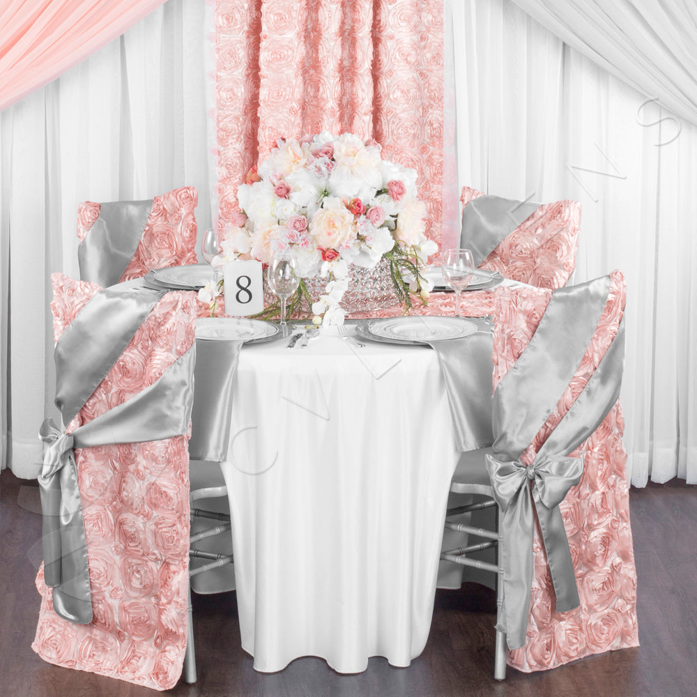 There’s something undeniably beautiful about satin. Its silky texture and shiny finish add a touch of class to any event. When wrapped around a chair, a satin sash softens the appearance of any seating and adds cohesion to the whole event design.