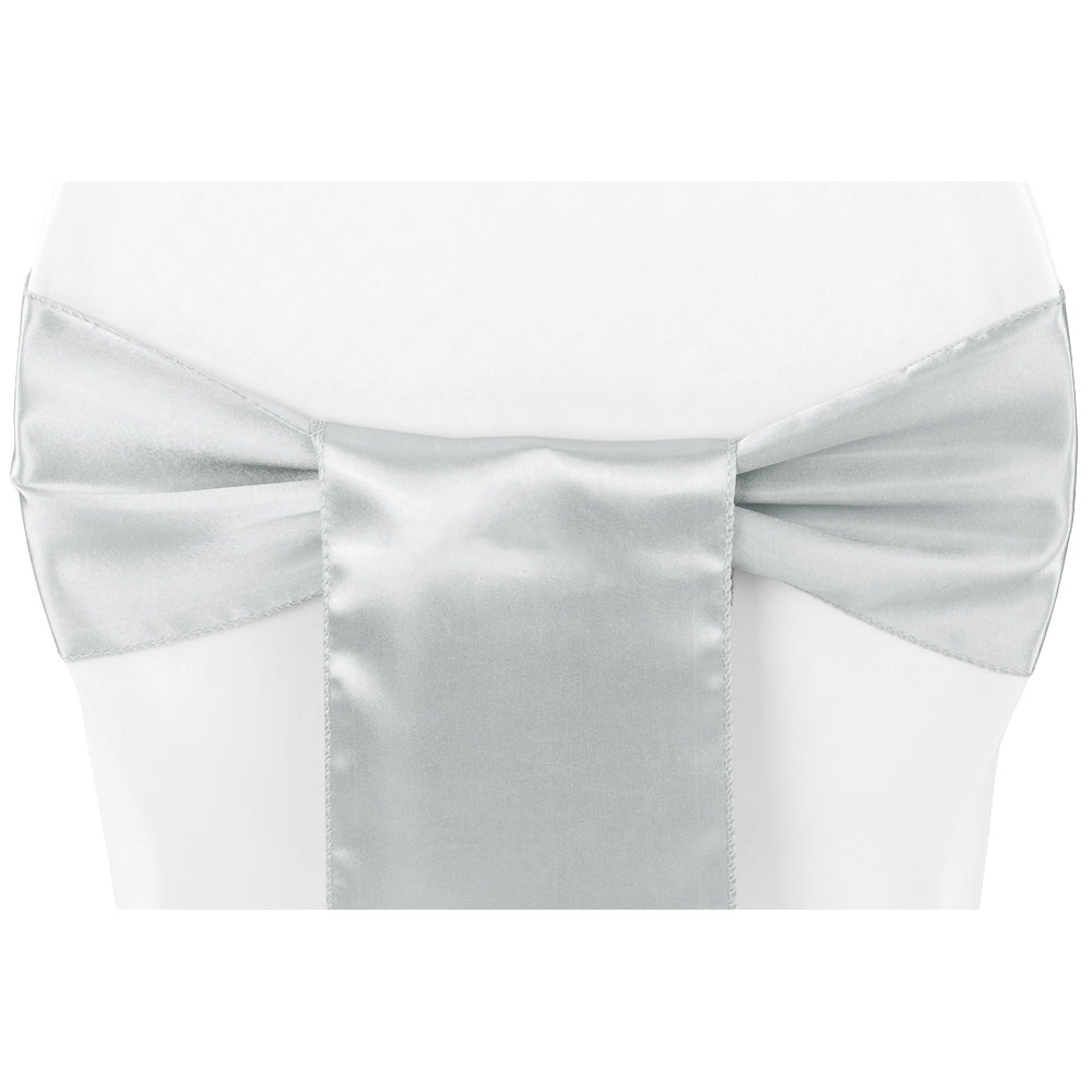Our silver sashes are made from premium satin fabric. This material has a beautiful sheen that catches the light and gives your setup a polished look. Satin also matches well with other event linens and decor, so it is simple to coordinate with your tablecloths, runners, and flower arrangements.