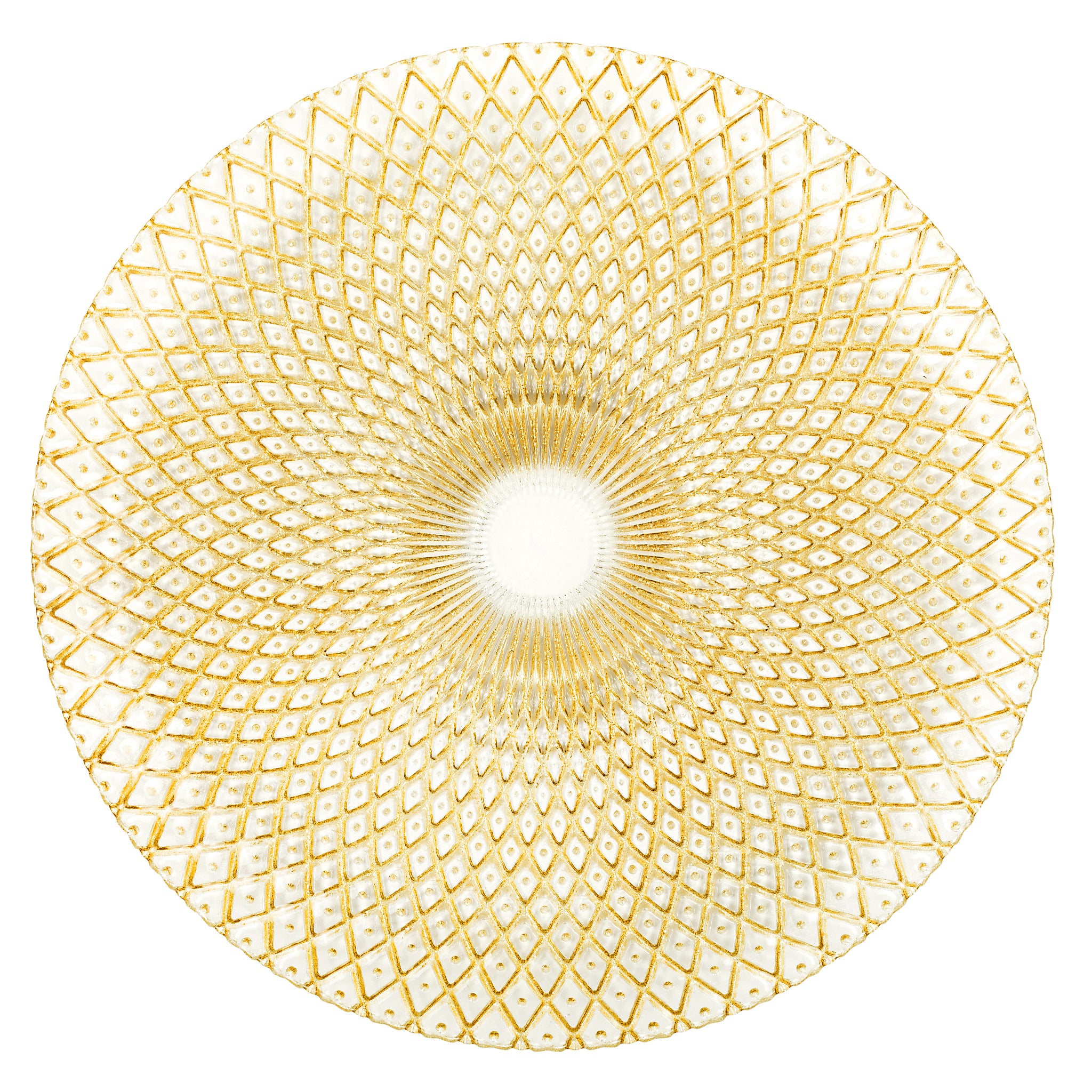 Luxurious, striking, and available in bulk, our new Sun Burst Glass Charger Plates are the touch your next event needs to make it stand out! Glass charger plates are an extravagant tablescape touch and pair well with linen tablecloths, napkins, and table runners. Each Sun Burst Glass Charger Plate is made from high-quality, clear glass with a geometric embossed burst design encircling the center of the plate. At 13" wide our Sun Burst Glass Charger Plates will work with a variety of dishware to perfect your table setting. Not only do they look great, but they're also functional and can save your linens from possible staining. Buying wholesale charger plates saves time and provides a high-end look for a great price!