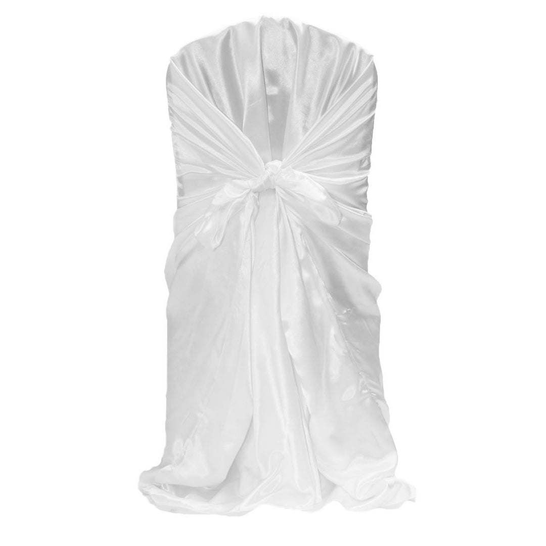 Our Universal Satin Self Chair Tie Covers are the epitome of class and elegance for any sophisticated event! Made of our durable luxe satin, these pillowcase chair covers will fit most chair models including metal folding, banquet, wood folding, and chiavari chairs. Satin has a gorgeous sheen surface that beautifully reflects light to show off the unique draping of universal tie covers. These slip-on covers are stress-free and a breeze to decorate with! Best of all, satin is a versatile fabric that can be paired with any other solid or textured fabric and still maintain a cohesive look.